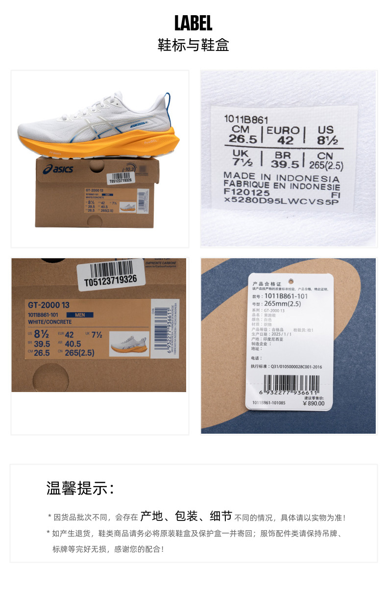ASICS亚瑟士 男 跑步鞋 GT-2000 13男款跑鞋 稳定支撑轻弹透气跑步鞋 缓震运动鞋 1011B861-101 白色
