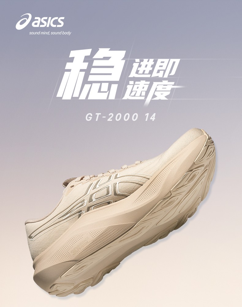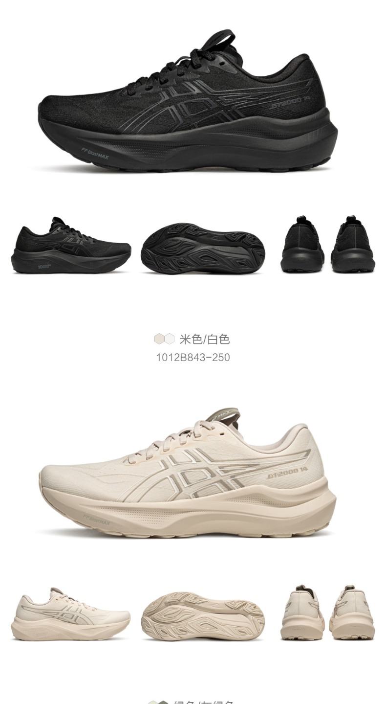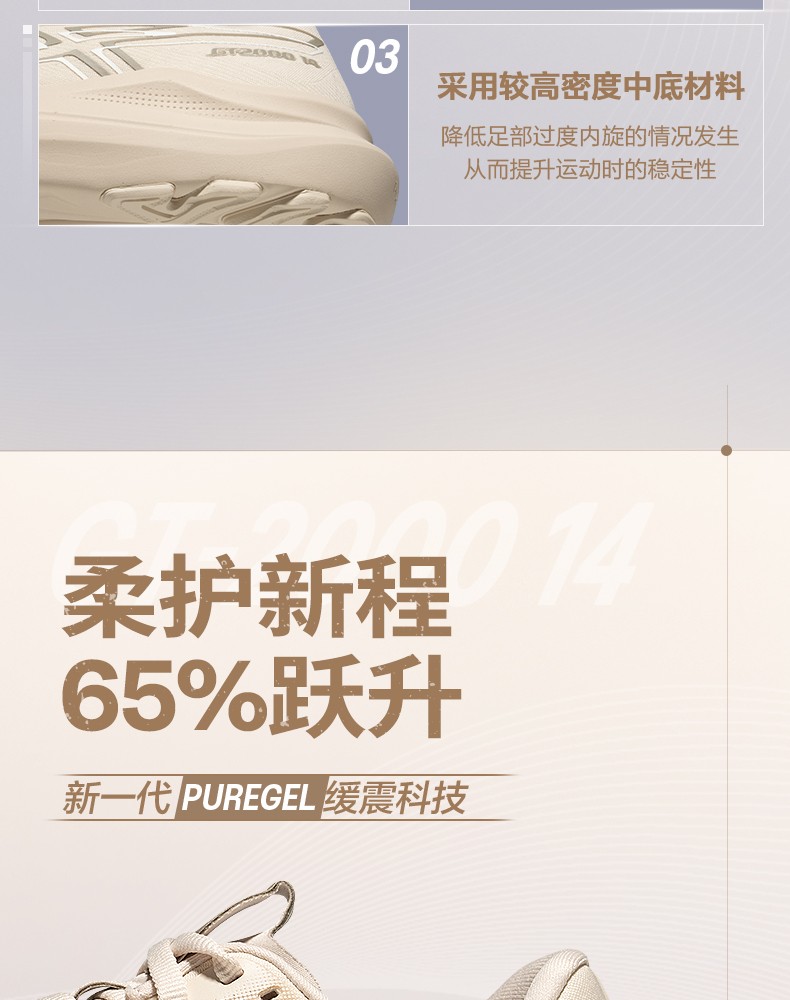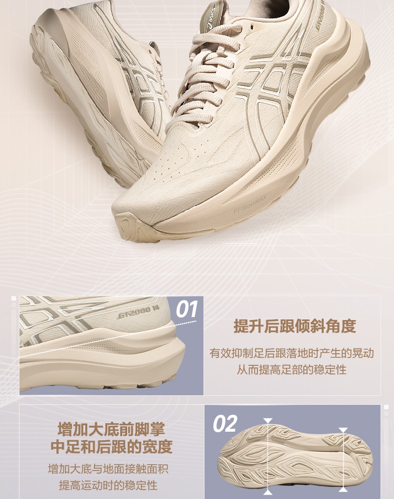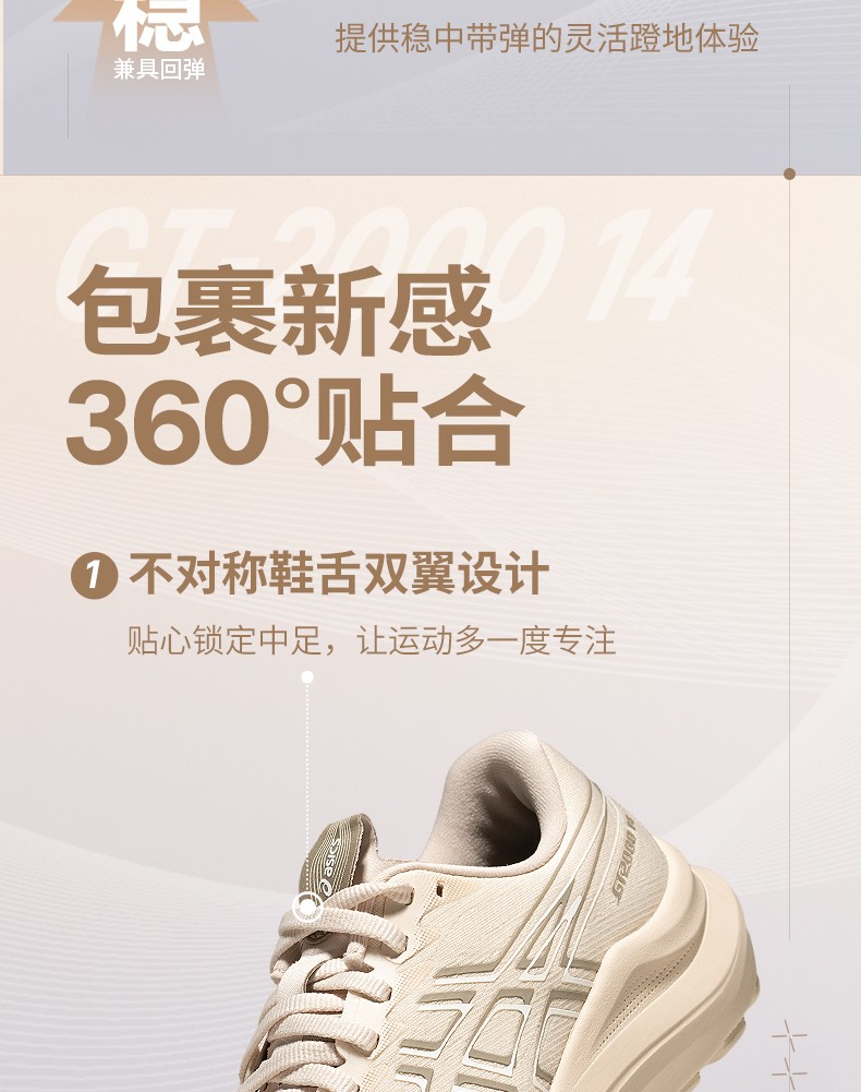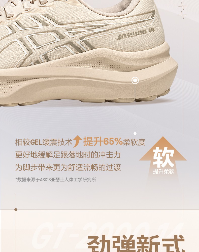 ASICS亚瑟士 男跑步鞋 新款GT-2000 14男子稳定支撑跑步鞋 耐磨透气运动鞋 1011C056-250 米色/白色