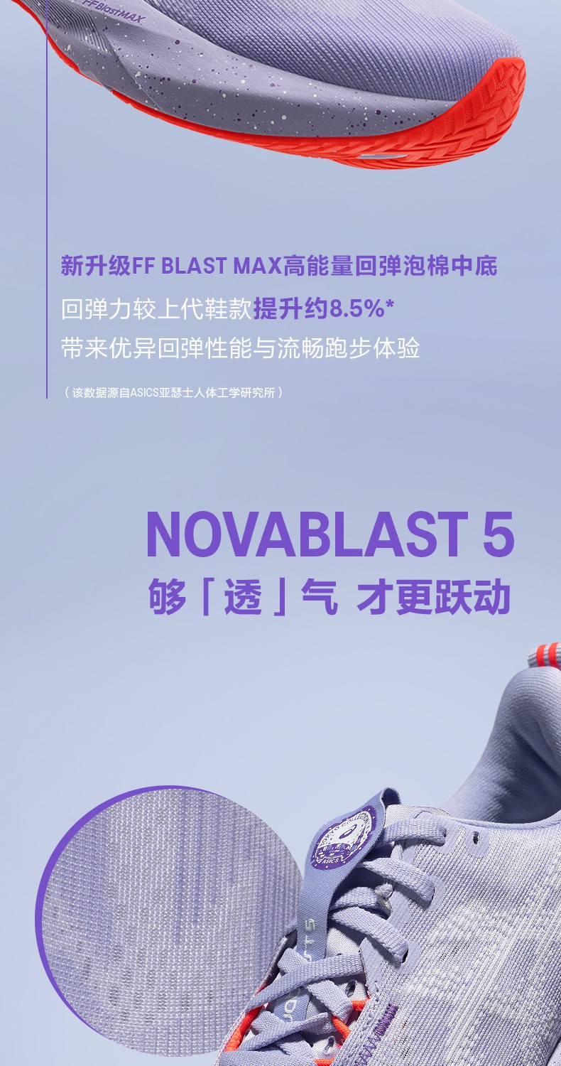 ASICS亚瑟士 女跑步鞋 新款NOVABLAST 5 TOKYO女子跑步鞋 缓震回弹透气运动鞋 1012B912-500 紫色/白色