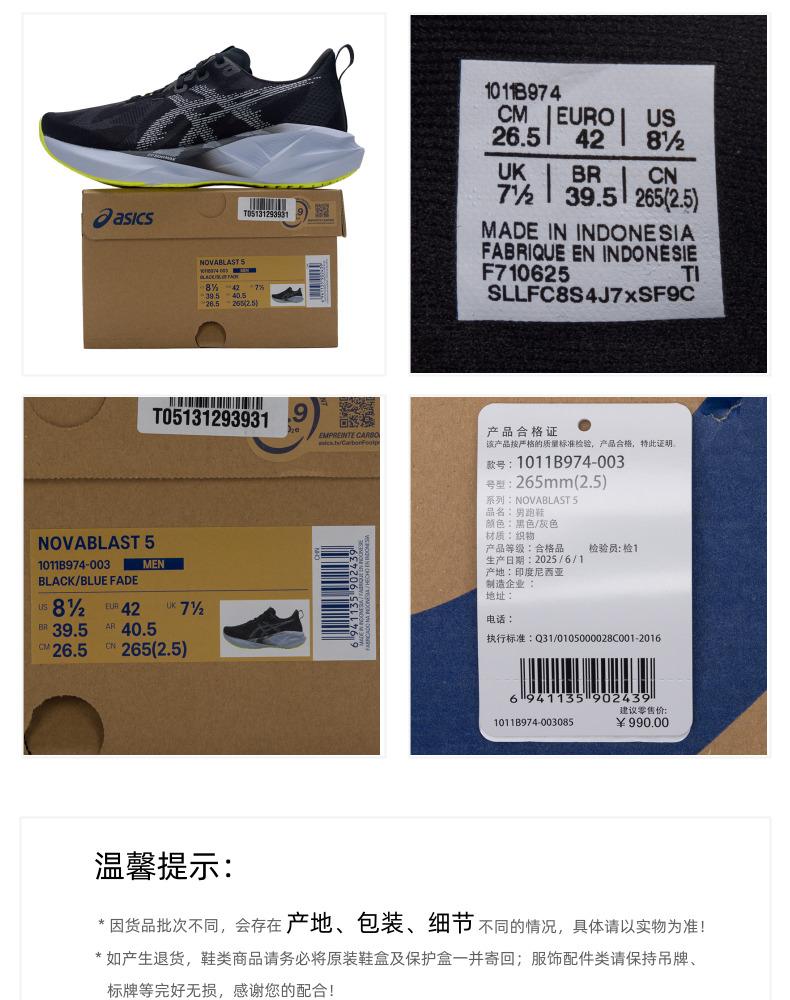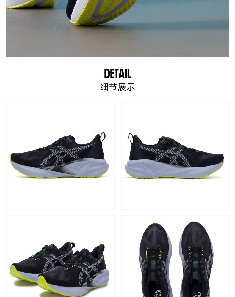 ASICS亚瑟士 男跑步鞋 NOVABLAST 5回弹缓震跑鞋 网面透气跑鞋 轻量耐磨运动鞋 1011B974-003 黑色/灰色