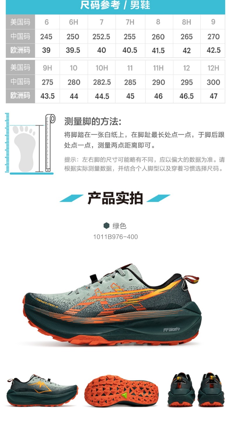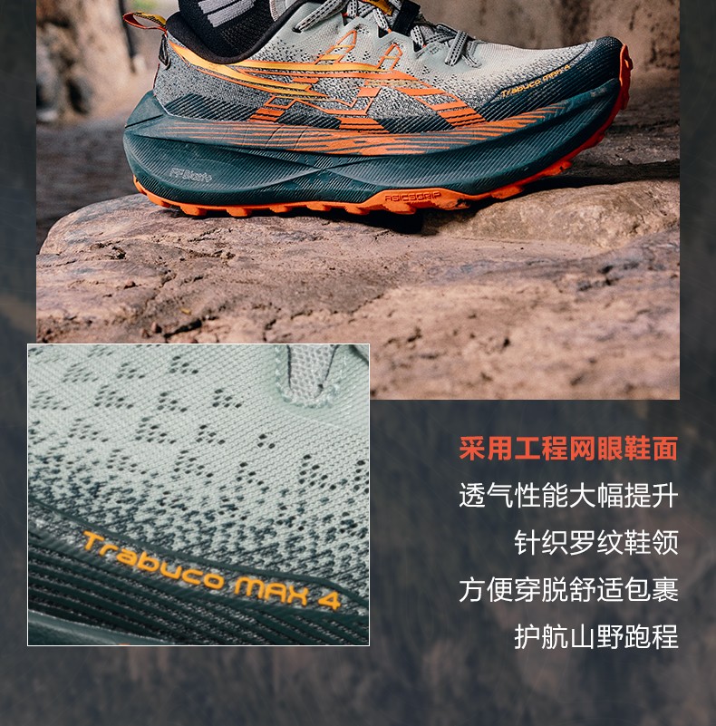 ASICS亚瑟士 越野跑鞋 Trabuco Max 4男越野跑鞋 耐磨回弹透气运动鞋 缓震舒适抓地防滑 1011B976-400 浅绿色/橙色