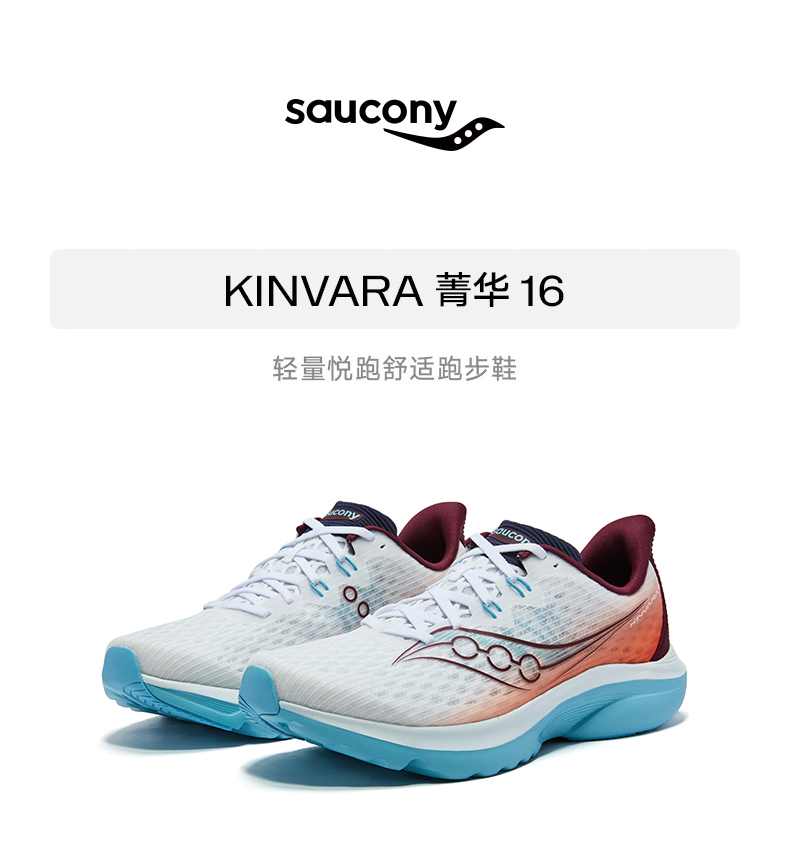 Saucony索康尼 菁华16缓震跑鞋 KINVARA 16女款支撑跑步鞋 秋冬轻便舒适透气减震运动鞋 S11020-247 浅灰