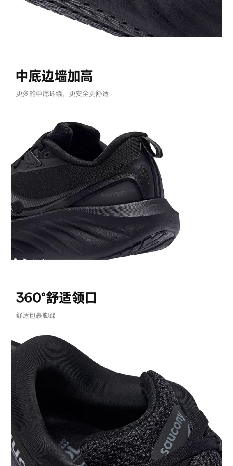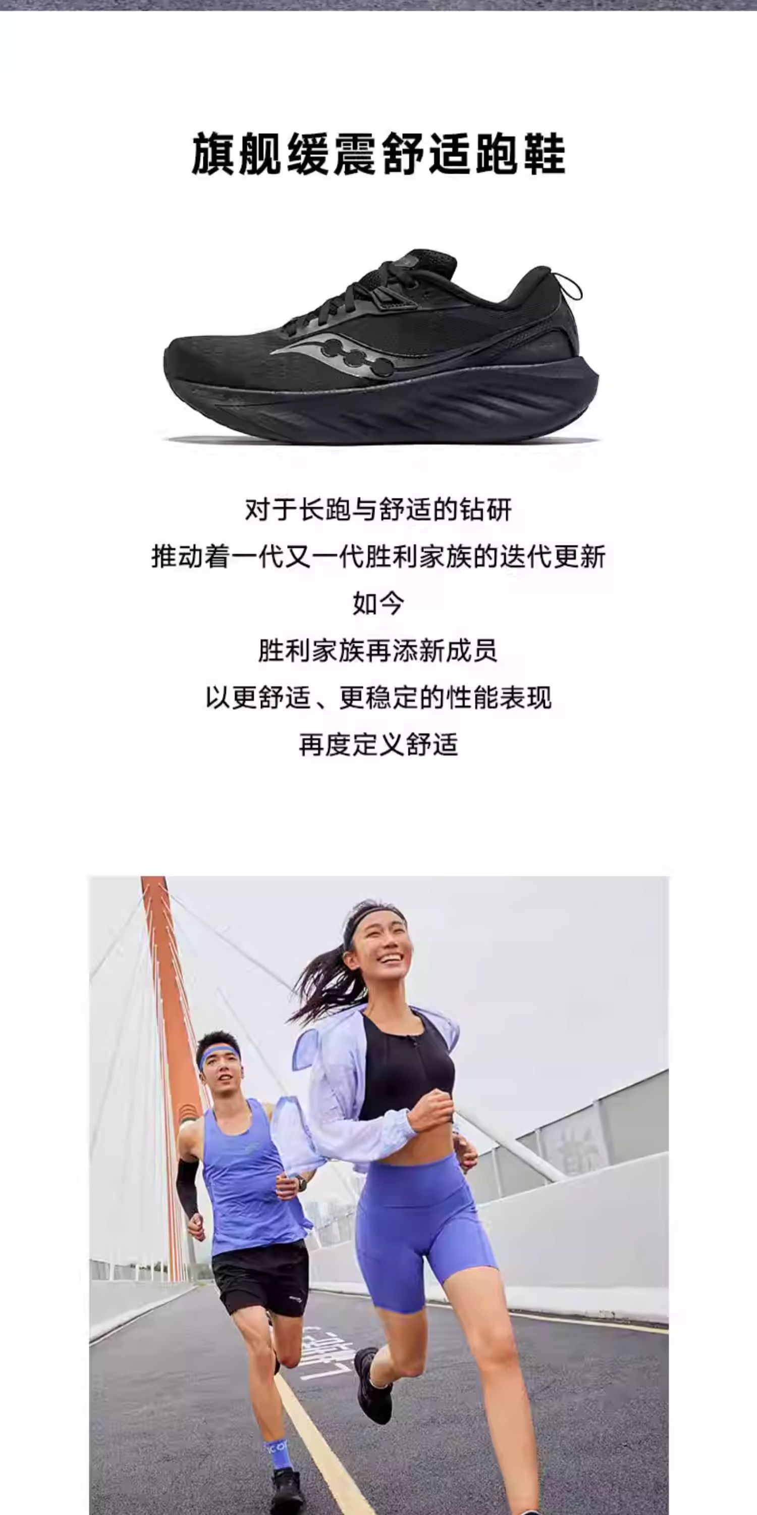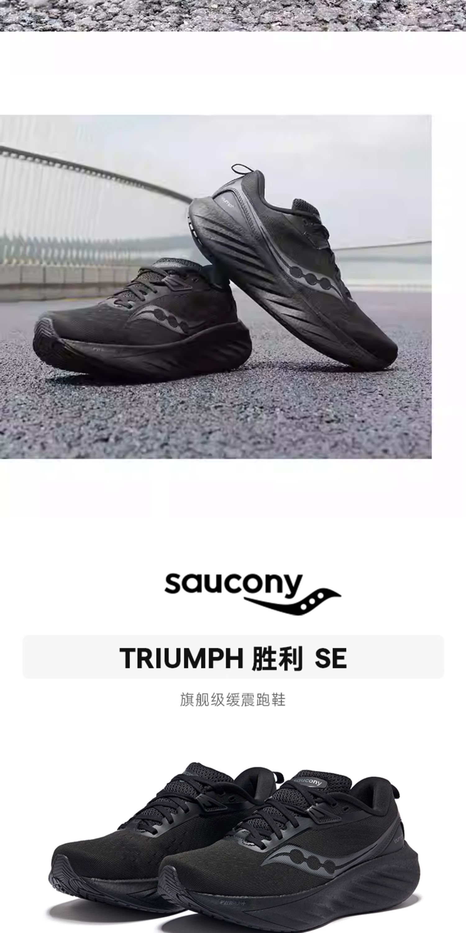 Saucony索康尼 胜利22跑步鞋 缓震轻便训练女鞋 秋季减震户外跑步鞋 S10986-201 黑色