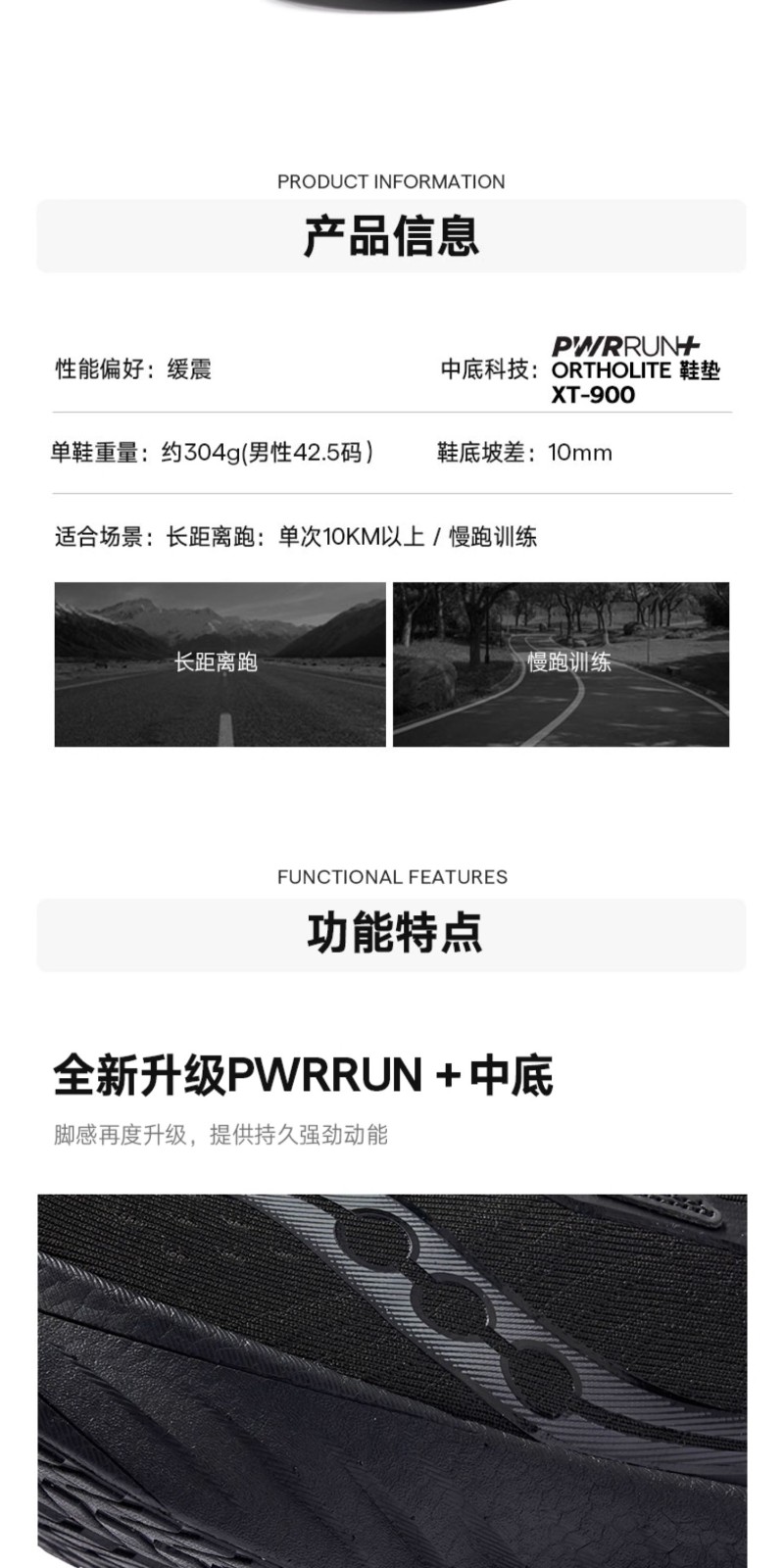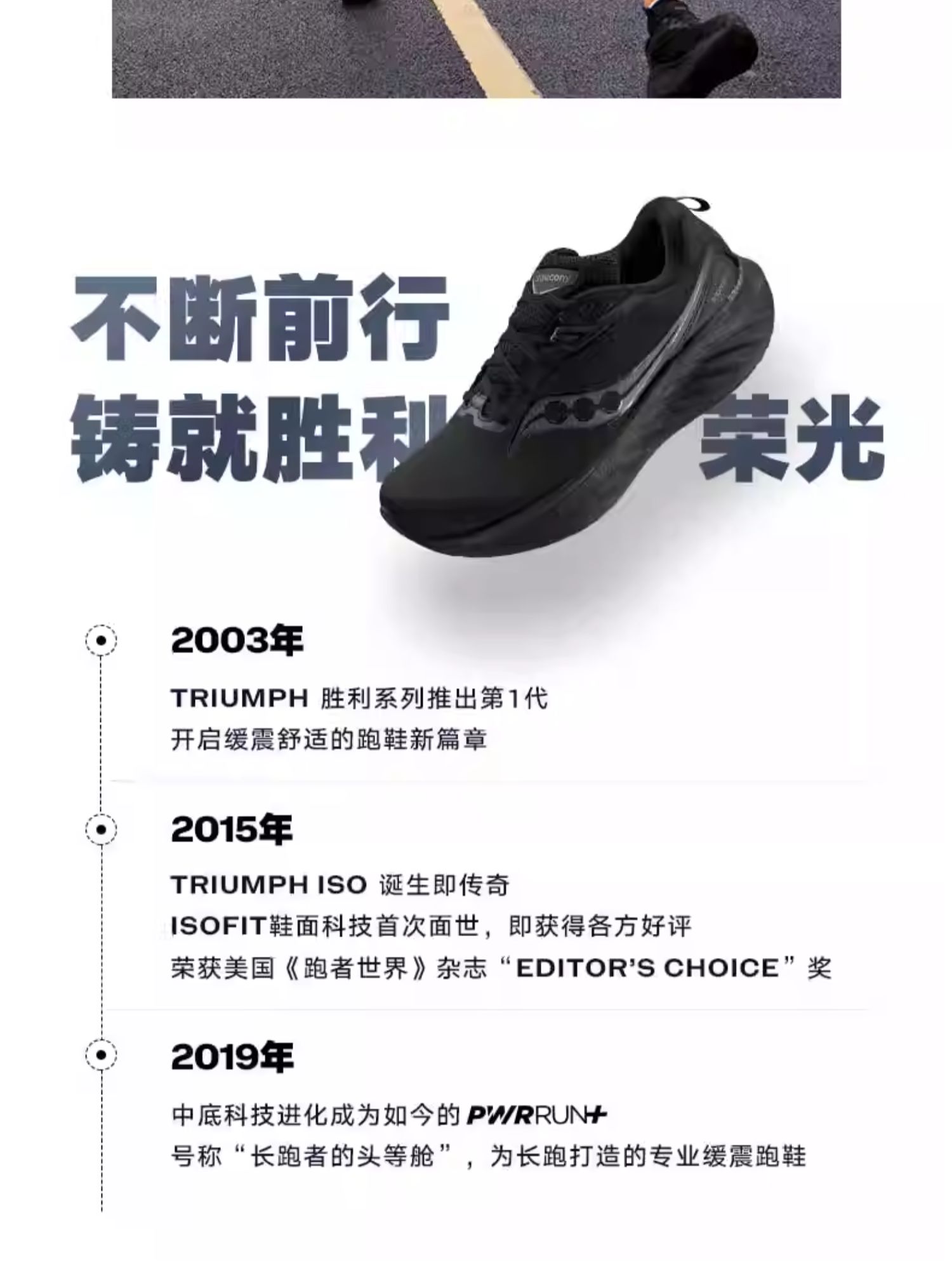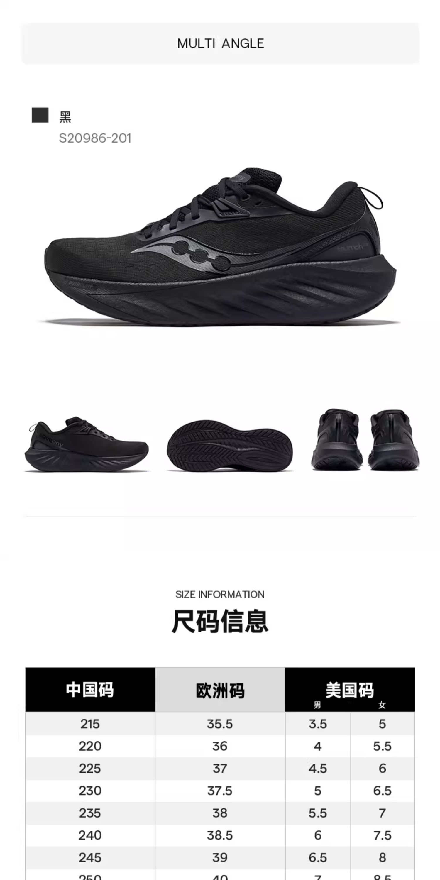 Saucony索康尼 胜利22跑步鞋 缓震轻便训练女鞋 秋季减震户外跑步鞋 S10986-201 黑色