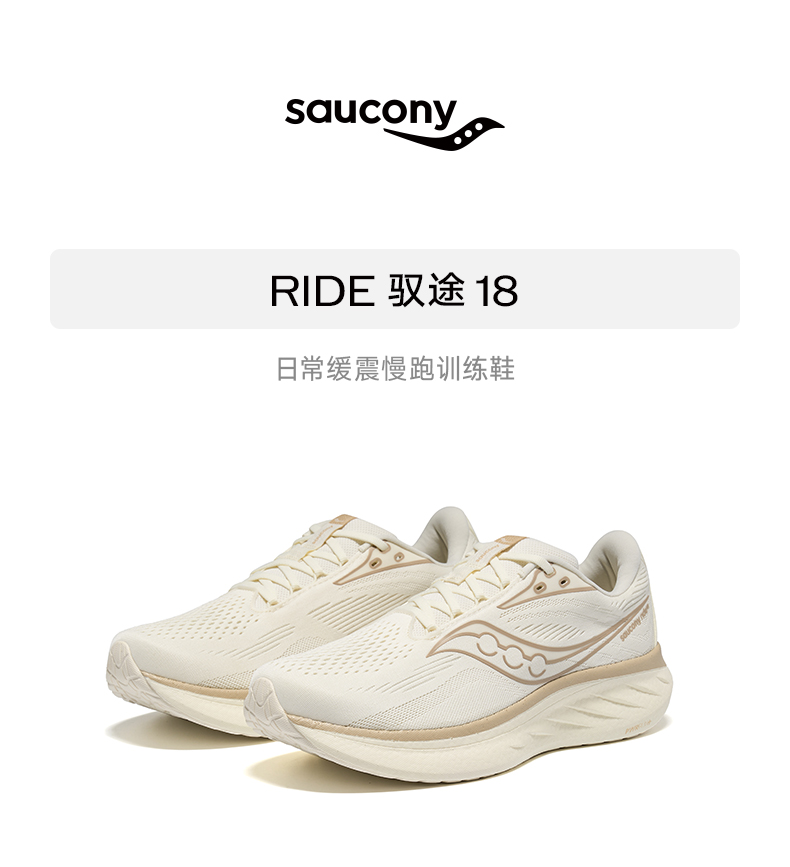 Saucony索康尼 驭途18缓震跑鞋 RIDE 18男款慢跑鞋 专业运动鞋 S21000-600 浅咖