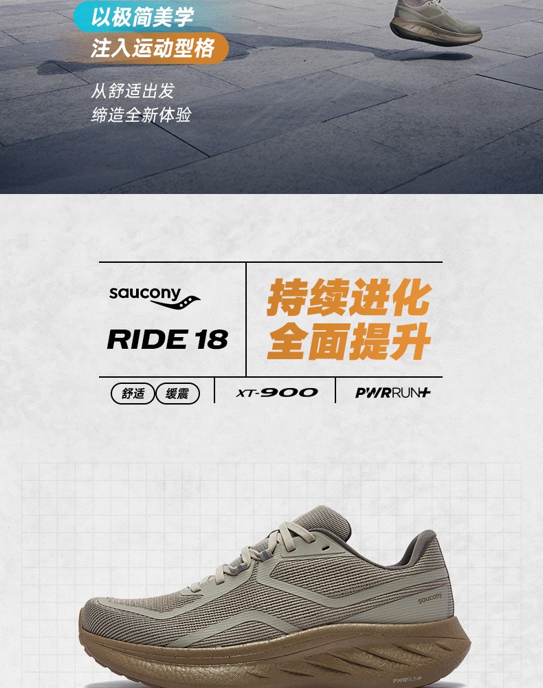 Saucony索康尼 驭途18缓震跑步鞋 RIDE 18 SE情侣款防滑减震运动户外跑步休闲鞋 S28264-5 米色
