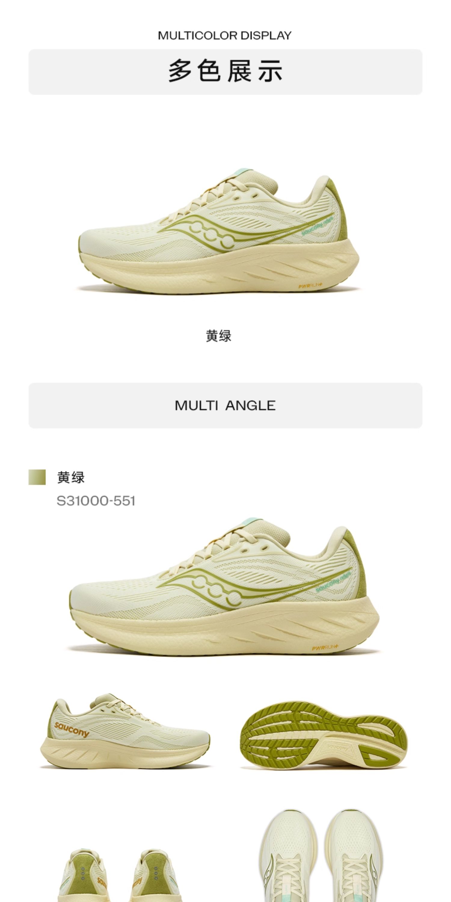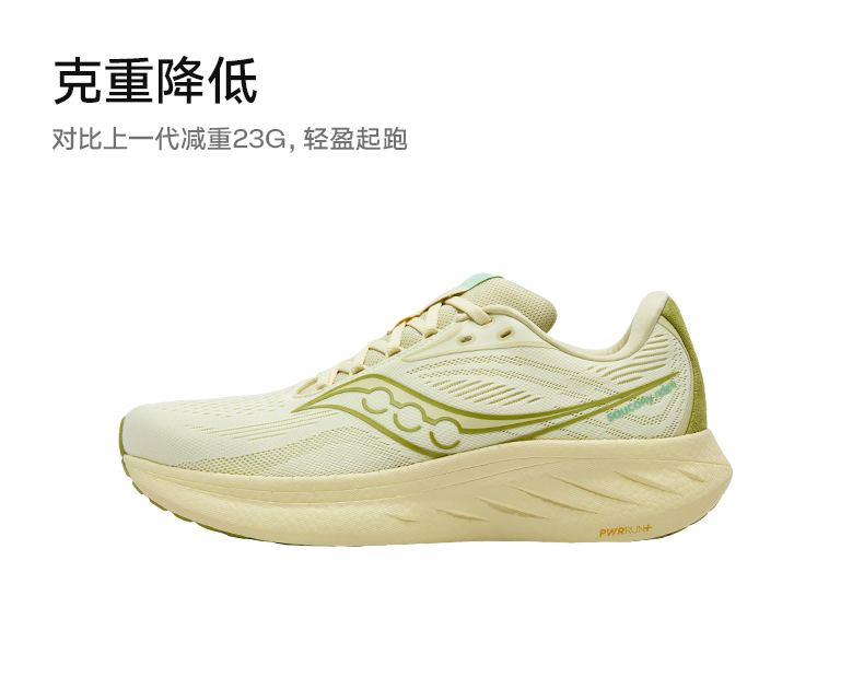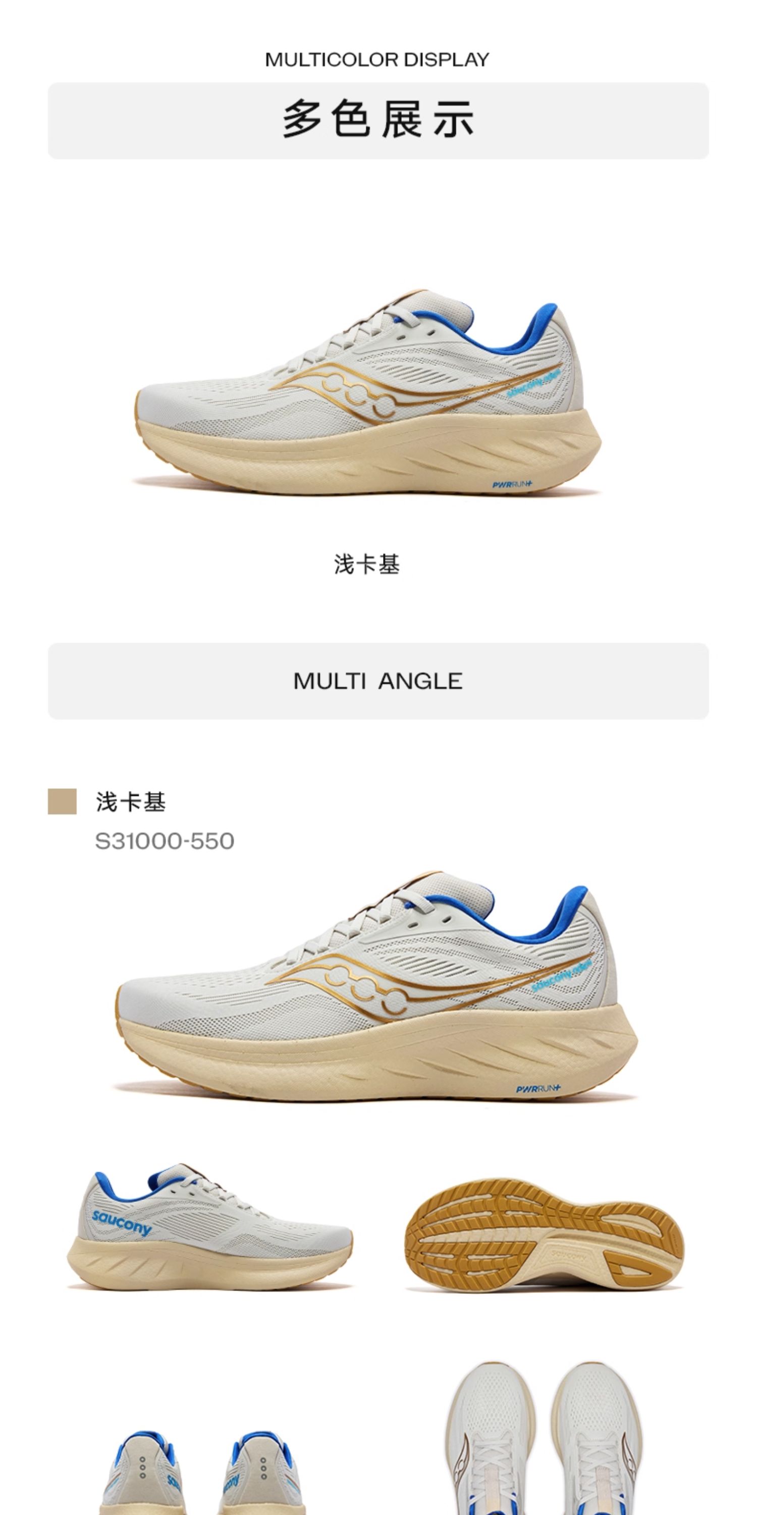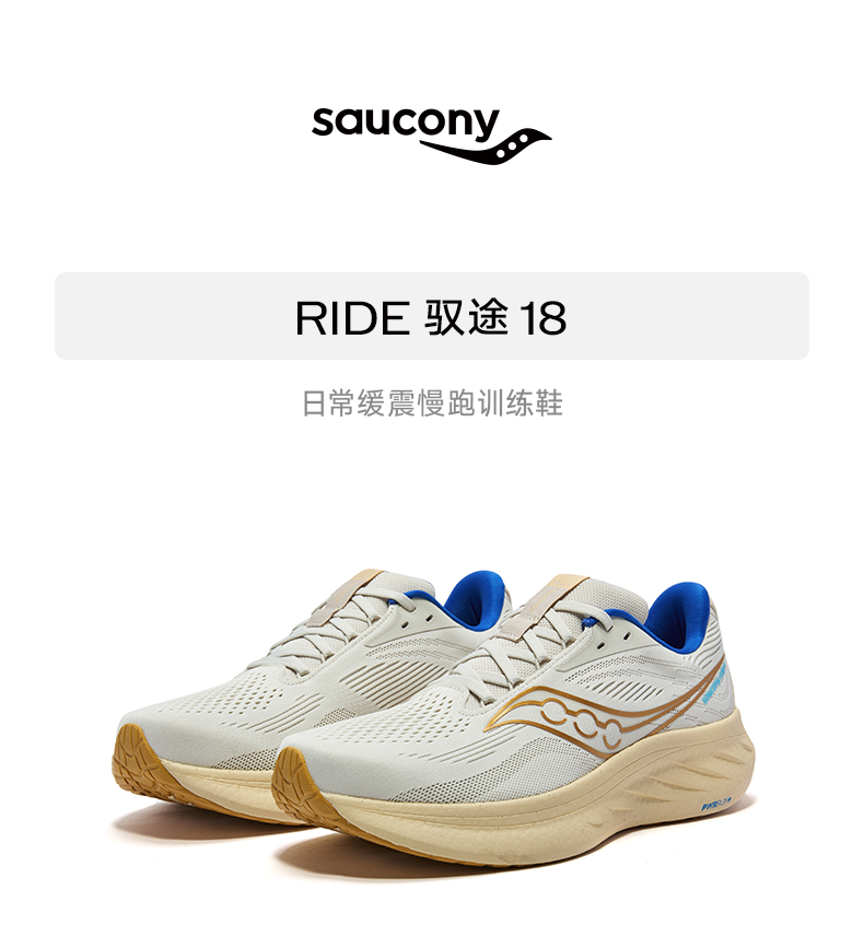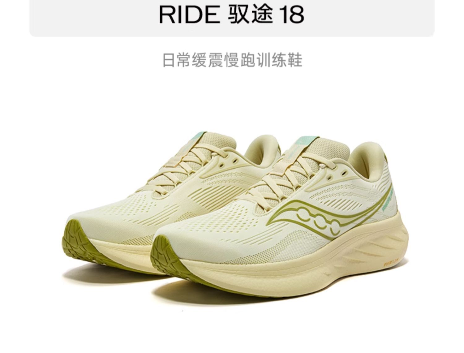 Saucony索康尼 驭途18缓震跑步鞋 RIDE 18情侣款防滑减震运动户外跑步休闲鞋 S31000-550 浅卡基