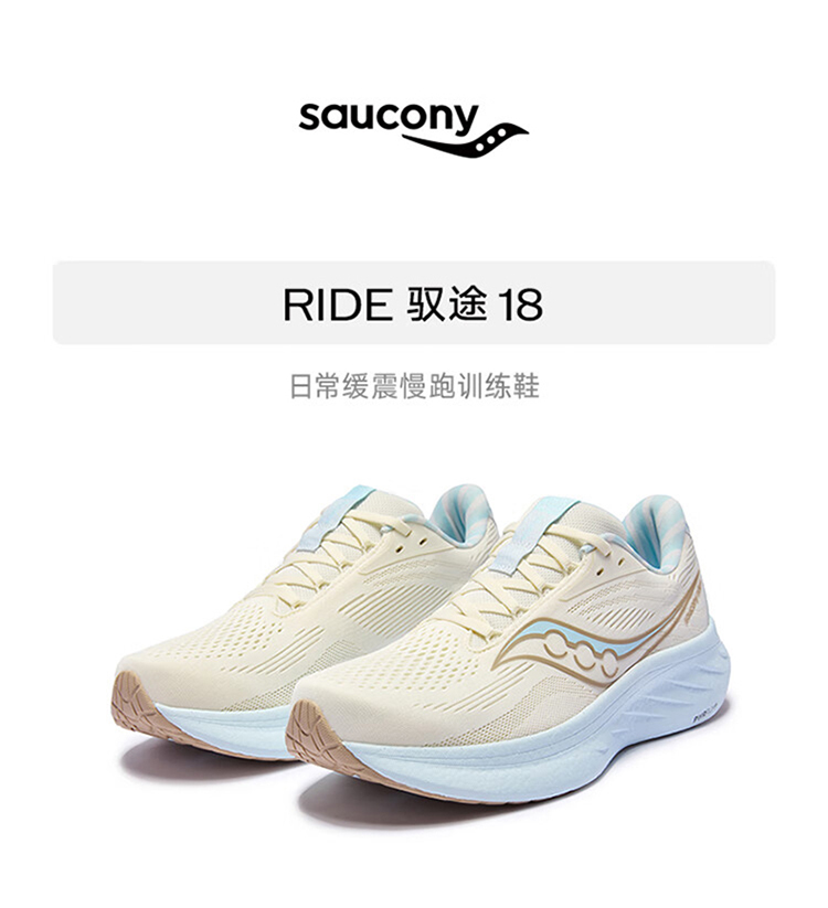 Saucony索康尼 驭途18缓震跑步鞋 RIDE 18情侣款防滑减震运动户外跑步休闲鞋 S28264-7 灰色