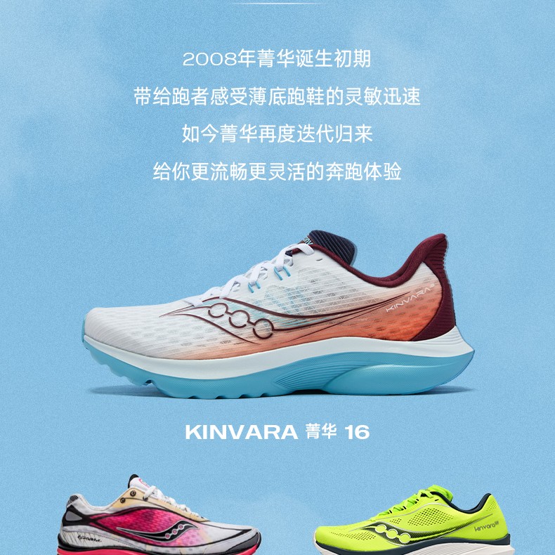 Saucony索康尼 菁华16缓震跑鞋 KINVARA 16男款支撑跑步鞋 秋冬轻便舒适透气减震运动鞋 S31020-551 白红