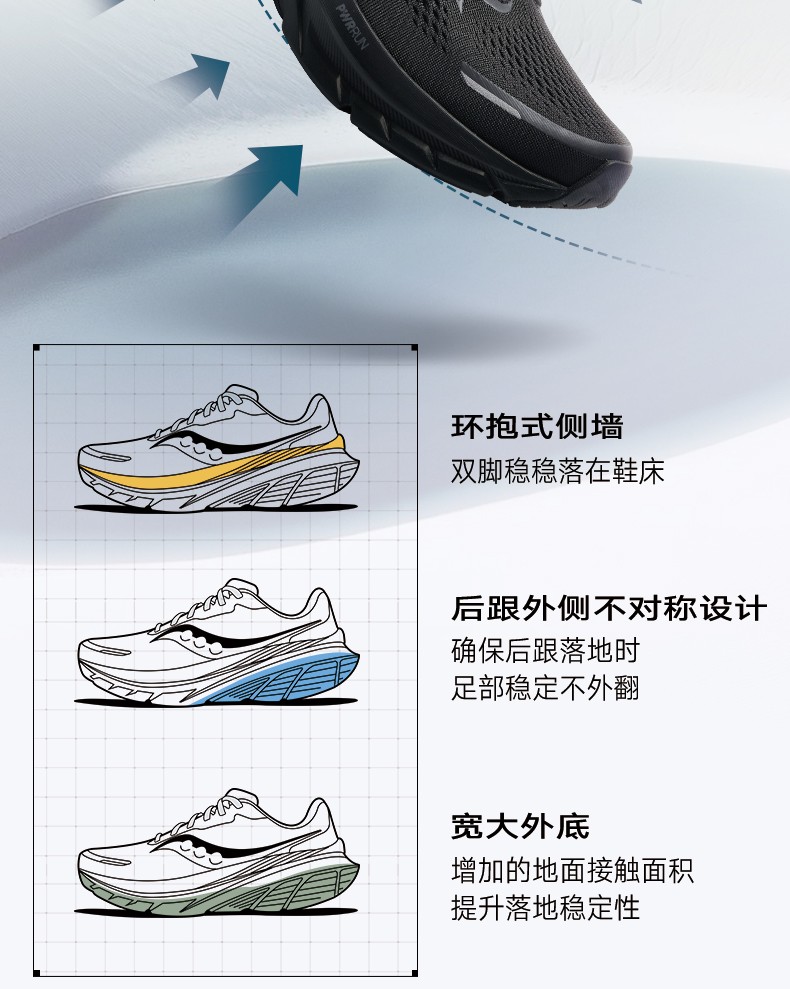 索康尼向导18以PWRRUN 中底搭配 PWRRUN+ 鞋垫