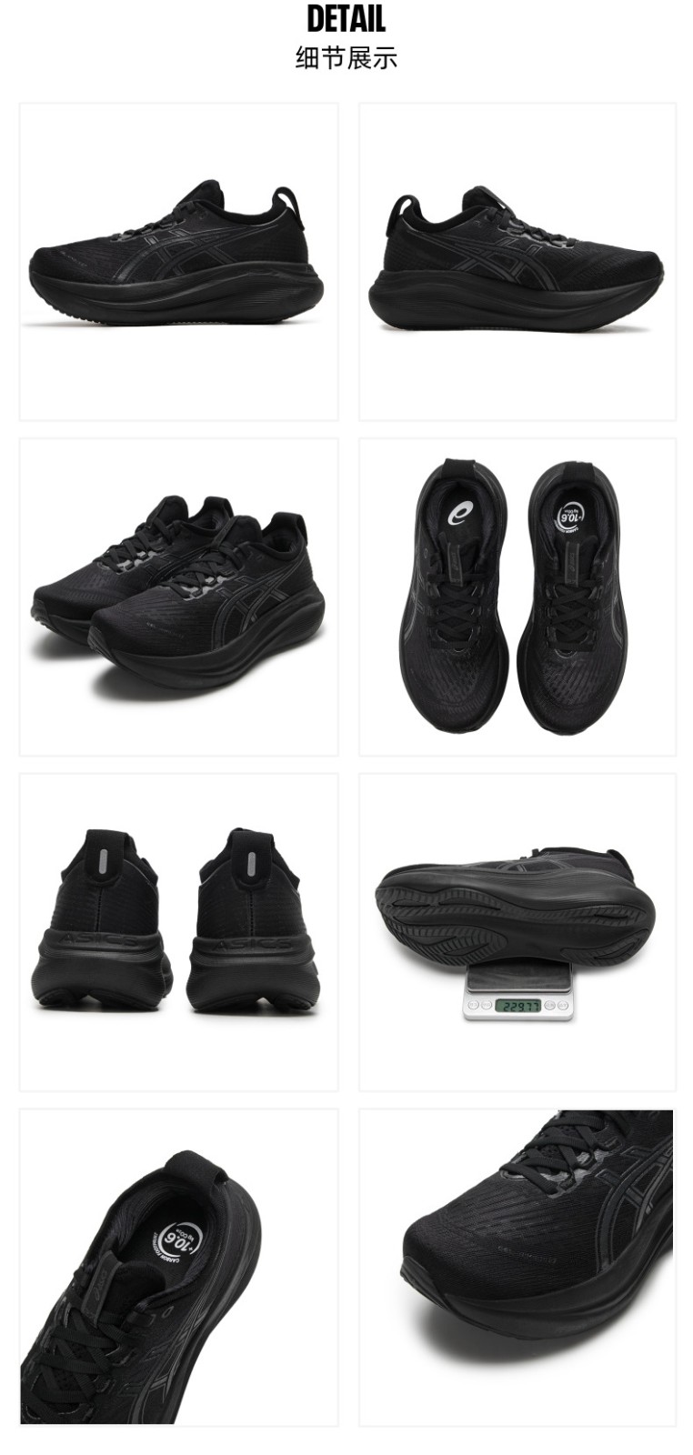 ASICS亚瑟士 女跑步鞋 GEL-NIMBUS 27柔软回弹专业跑步鞋(D宽楦)透气减震运动鞋 1012B752-001 黑色/灰色
