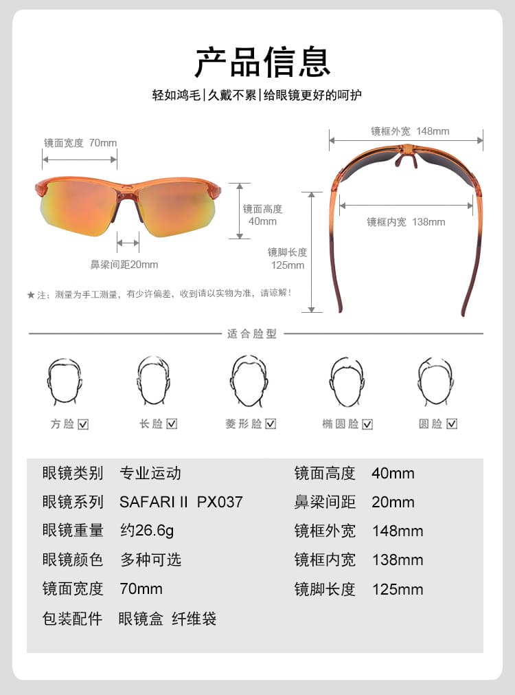 POHINIX博铌斯 跑步眼镜 新款SAFARIⅡ系列运动眼镜 专业马拉松越野跑步高尔夫护目镜 自行车骑行太阳眼镜男女款 PX037 多色可选