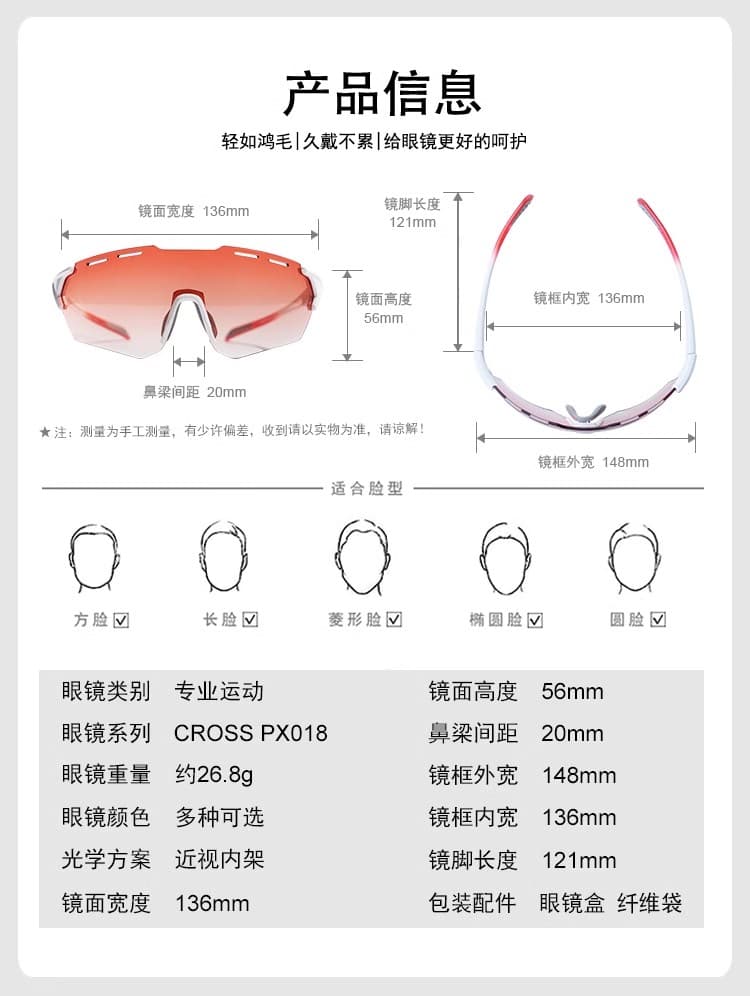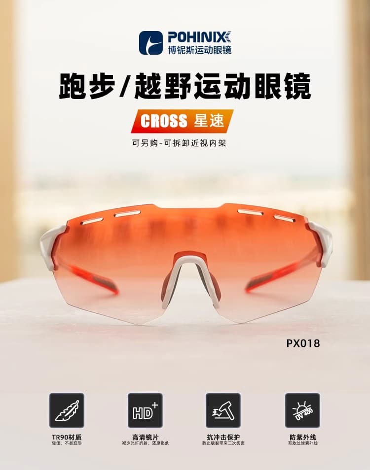 POHINIX博铌斯 跑步眼镜 CROSS系列运动眼镜 自行车骑行眼镜 越野跑马拉松眼镜男女同款 PX018 多色可选