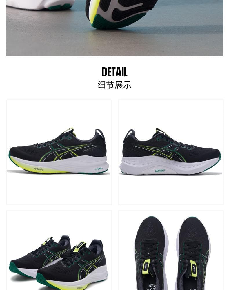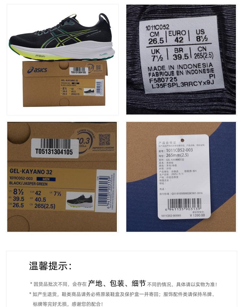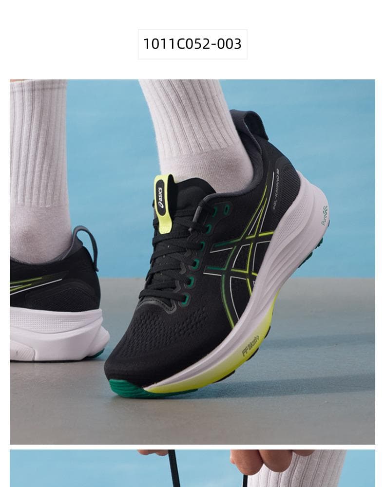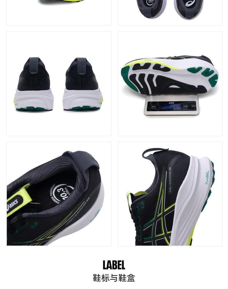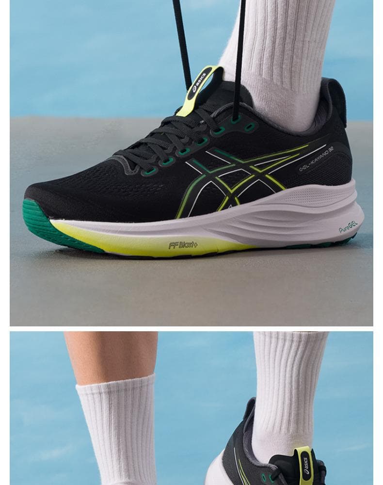 ASICS亚瑟士 男 跑步鞋 GEL-KAYANO 32稳定支撑缓轻奢专业运动鞋 1011C052-003 黑色/绿