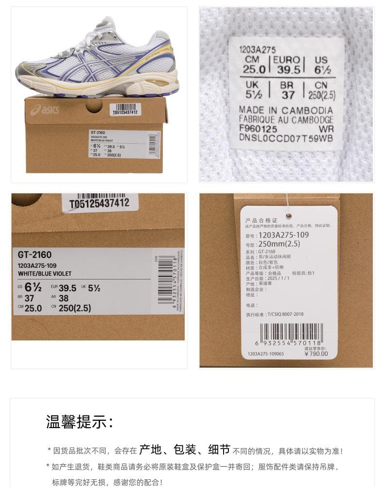 ASICS亚瑟士 中性休闲鞋 2025秋季新款GT-2160网面复古老爹鞋女鞋运动鞋休闲鞋 1203A275-109 白色/紫色
