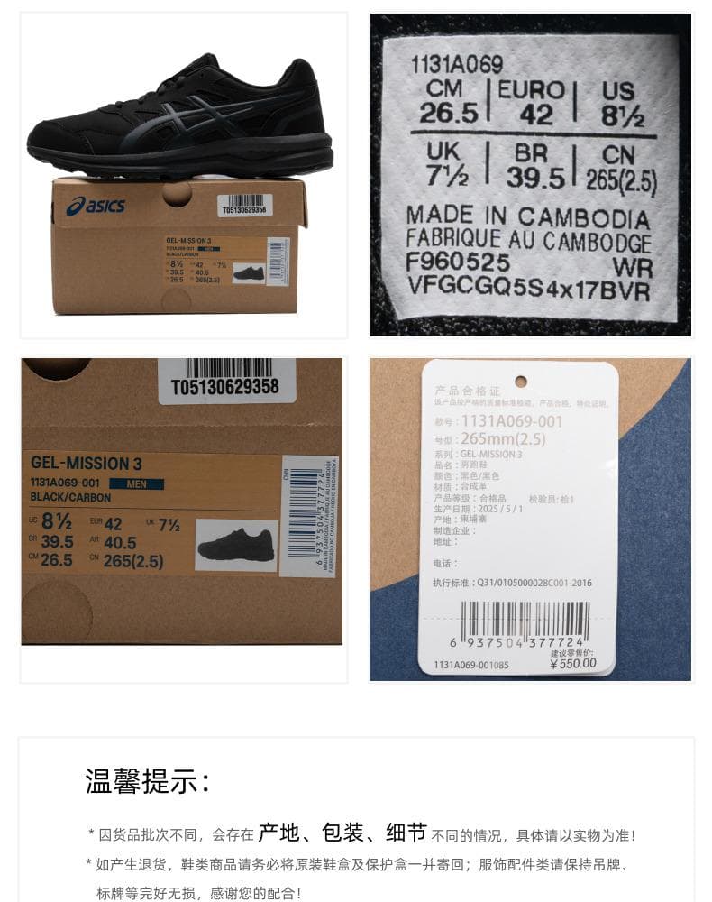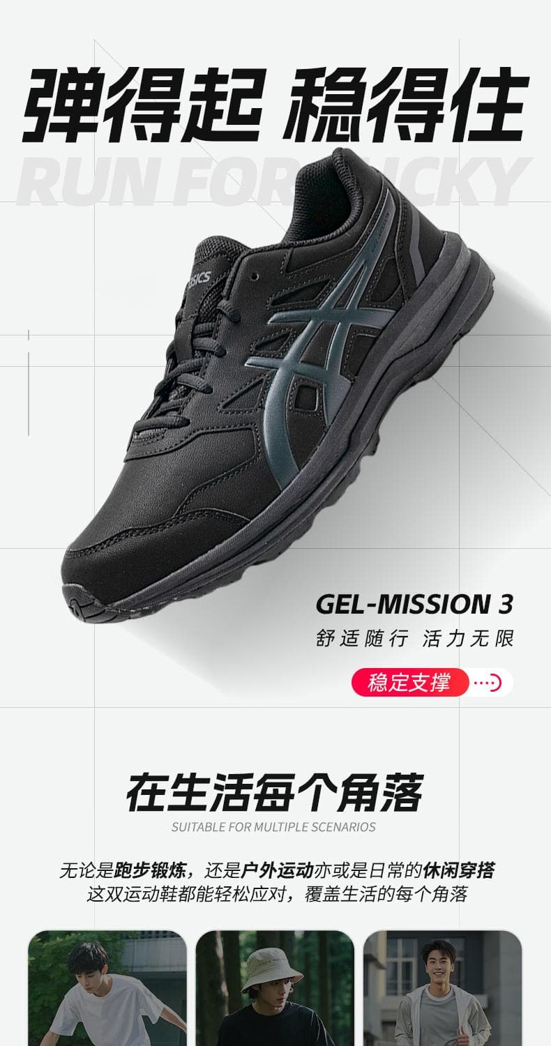 ASICS亚瑟士 男 慢跑鞋 2025秋季新款GEL-MISSION 3黑武士运动鞋减震跑步鞋男 1131A069-001 黑色