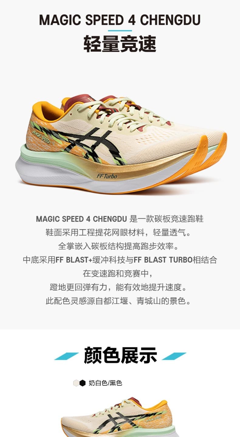 ASICS亚瑟士 男 竞速跑鞋 MAGIC SPEED 4 CHENGDU比赛训练碳板跑步鞋 回弹轻量运动鞋 1011C102-100 奶白色/黑色
