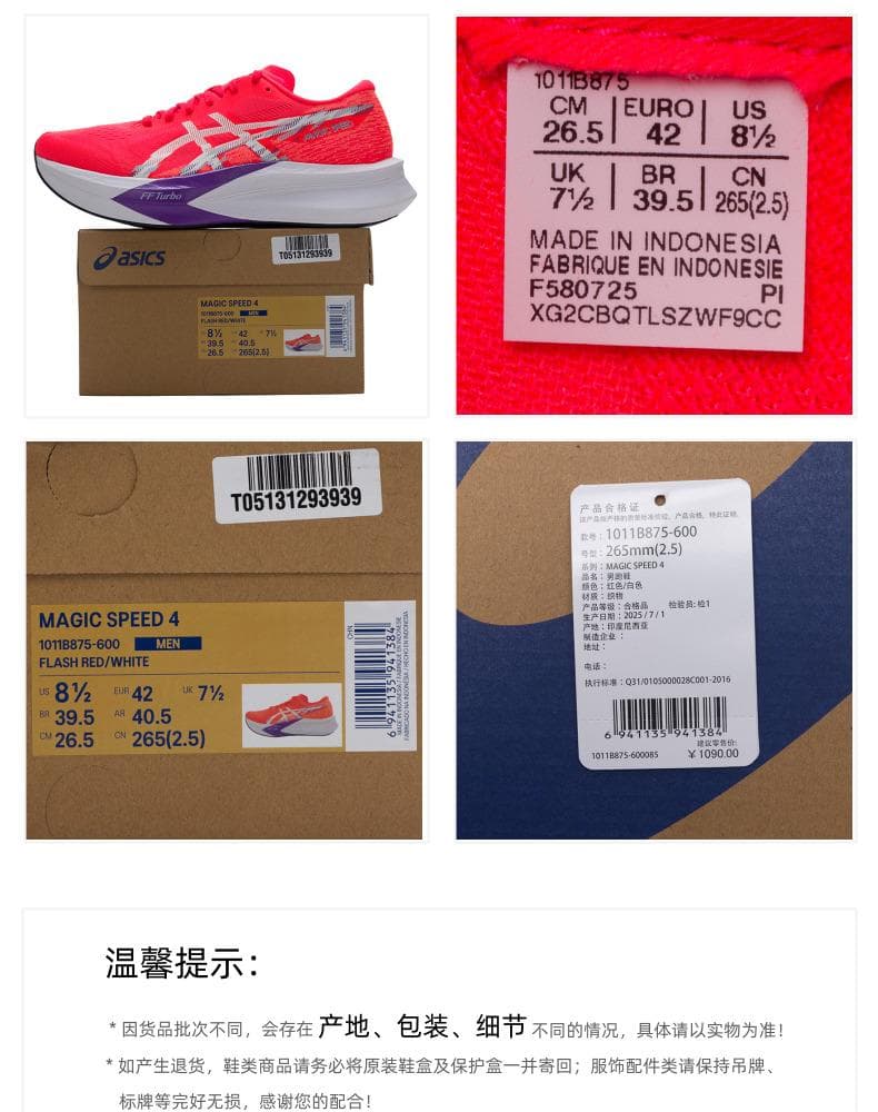 ASICS亚瑟士 男 竞速跑鞋 MAGIC SPEED 4比赛训练碳板跑步鞋 回弹轻量运动鞋 1011B875-600 红色/白色