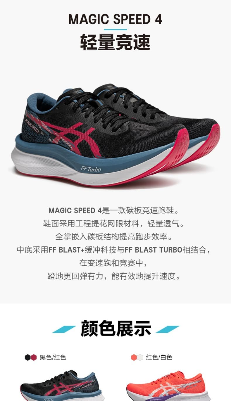 ASICS亚瑟士 女 竞速跑鞋 MAGIC SPEED 4比赛训练碳板跑步鞋 回弹轻量运动鞋 1012B676-001 黑色/红色