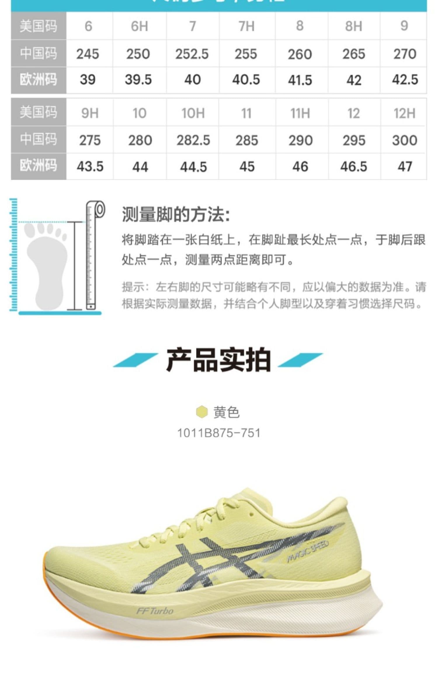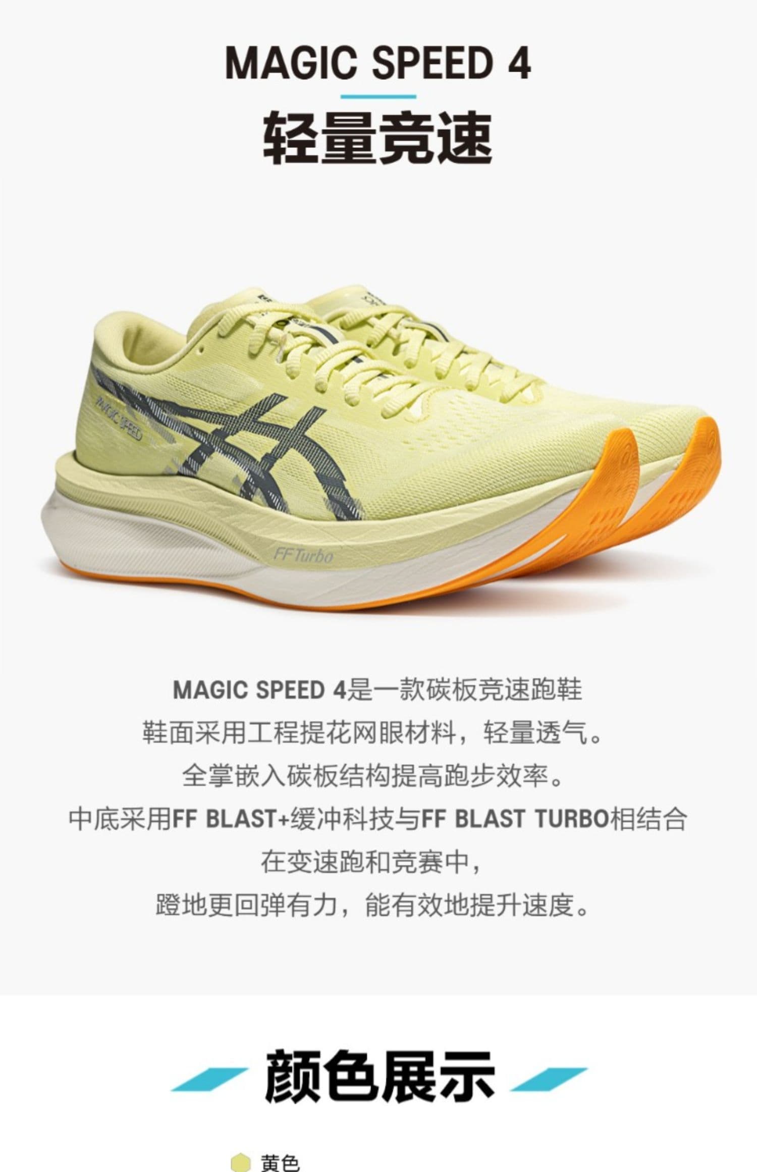 ASICS亚瑟士 男 竞速跑鞋 MAGIC SPEED 4比赛训练碳板跑步鞋 回弹轻量运动鞋 1011B875-751 黄色