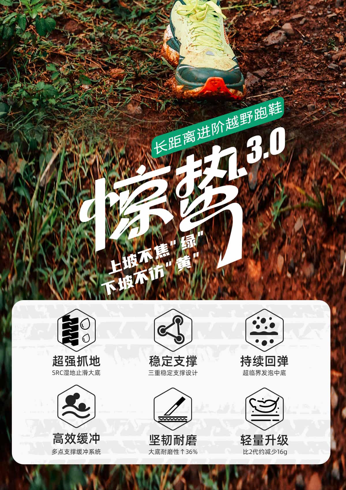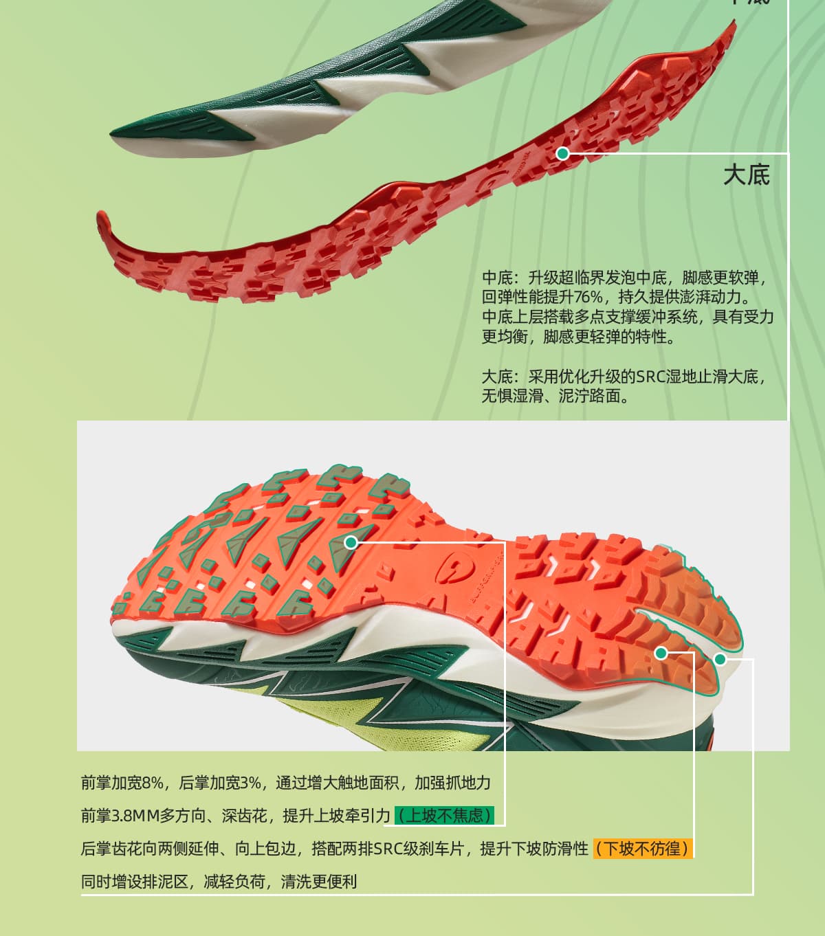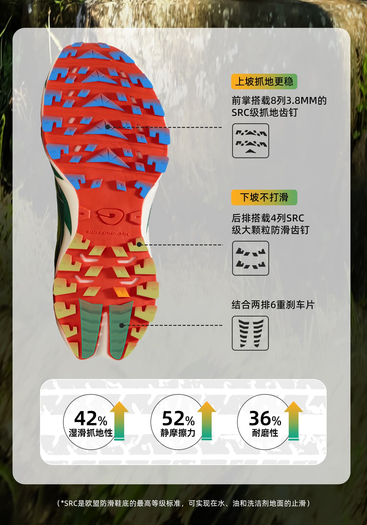 SRC 级防滑大底配 3.8mm 深齿