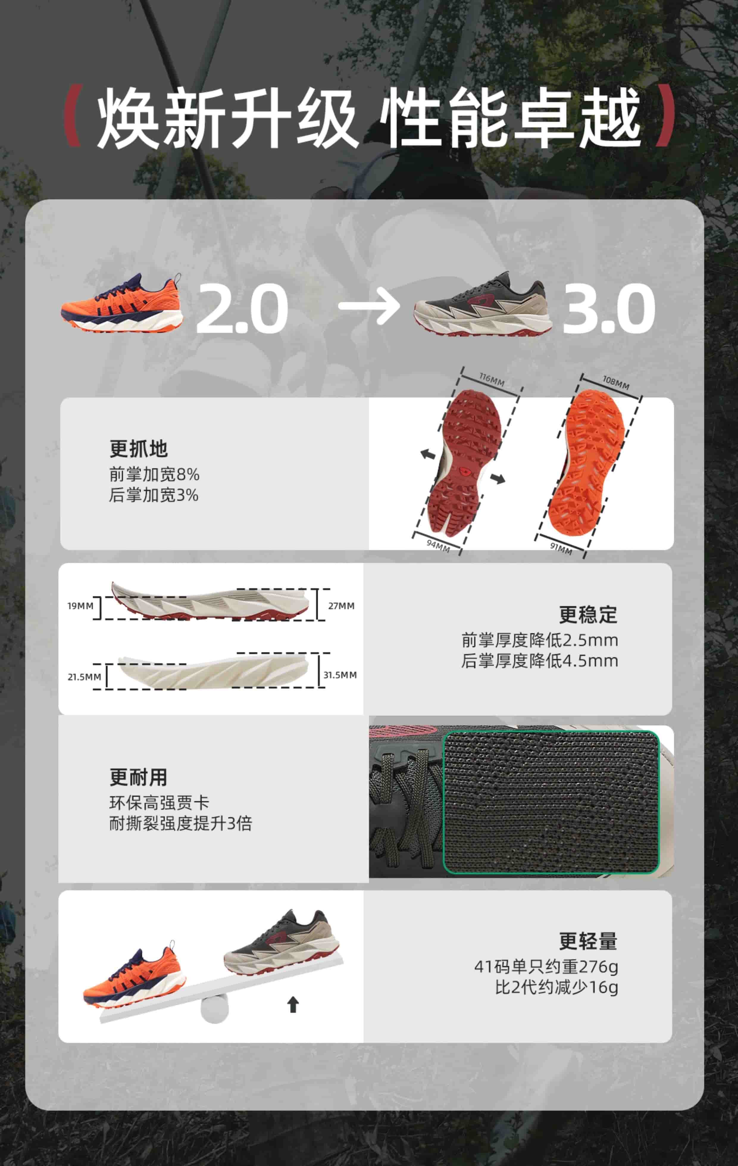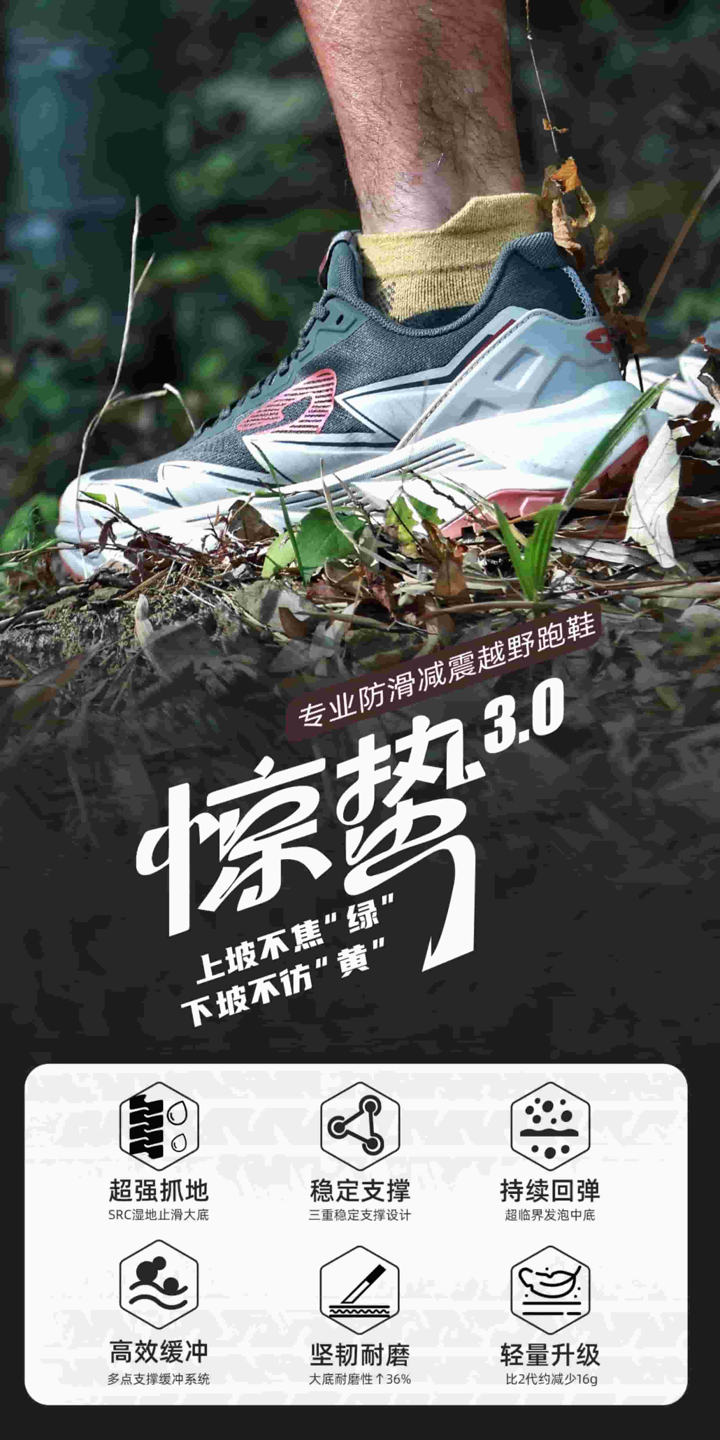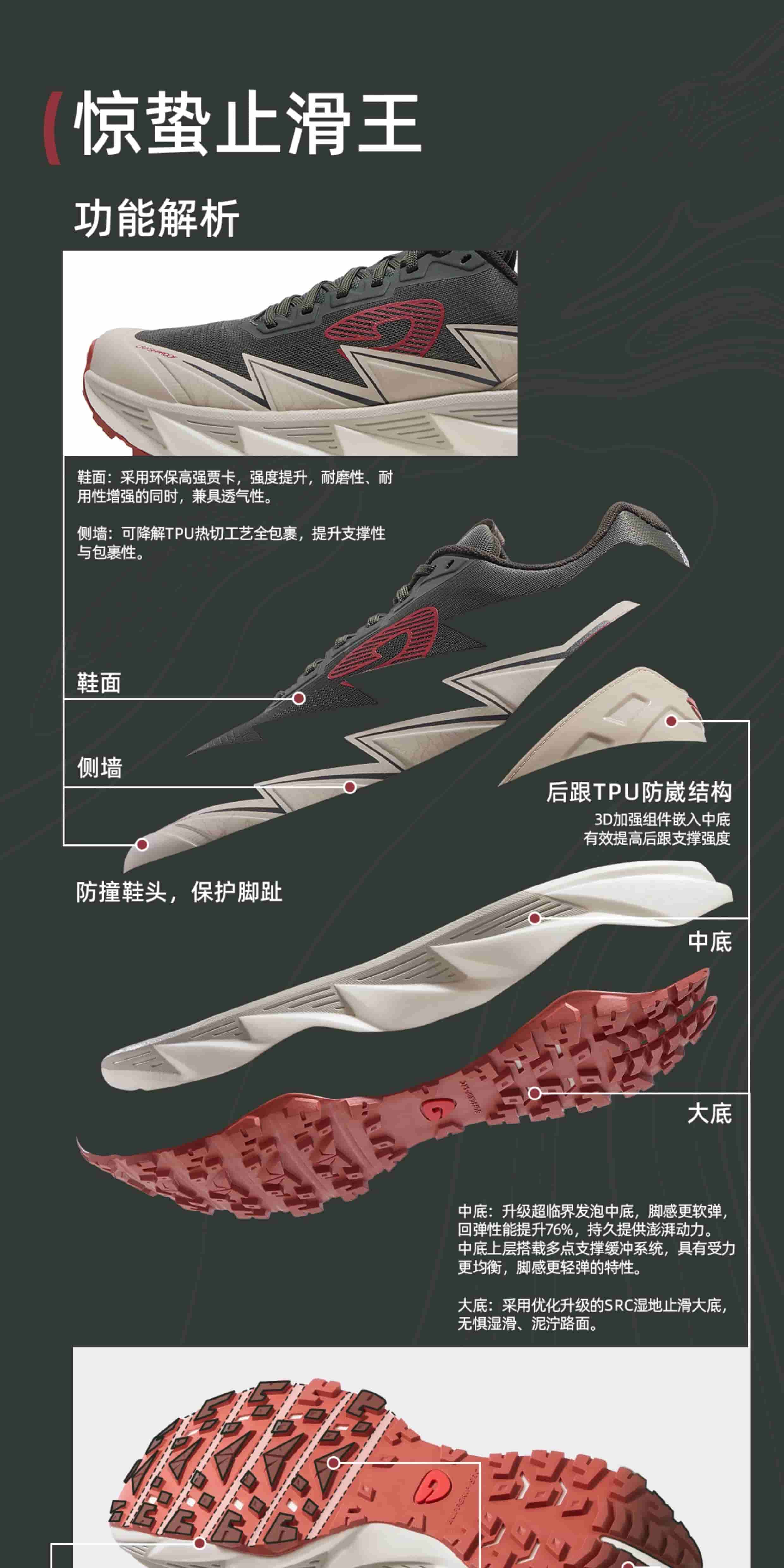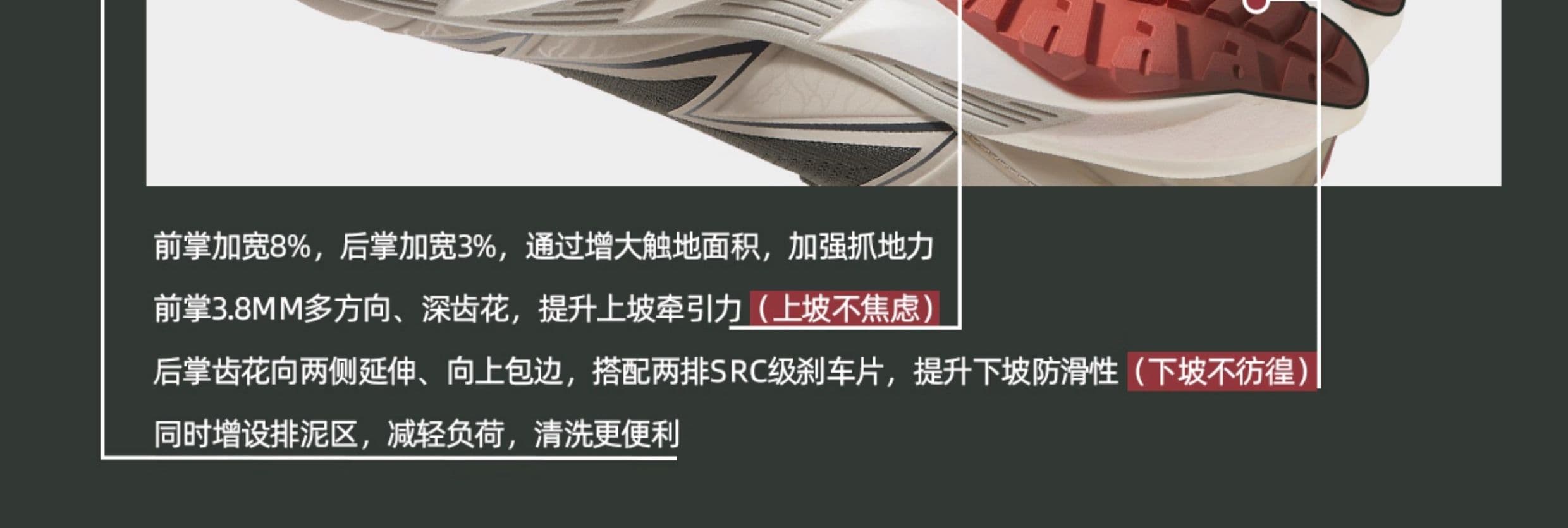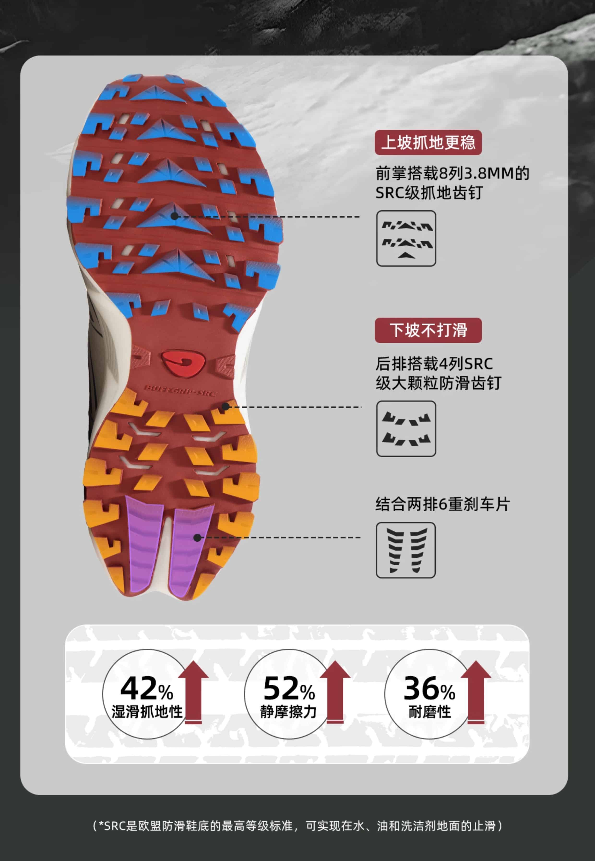 SRC 级防滑大底配 3.8mm 深齿