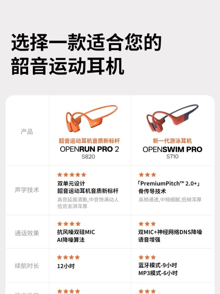 Shokz韶音 运动耳机 OpenRun Pro2骨传导蓝牙运动耳机挂耳无线跑步骑行健身 S820 多色可选