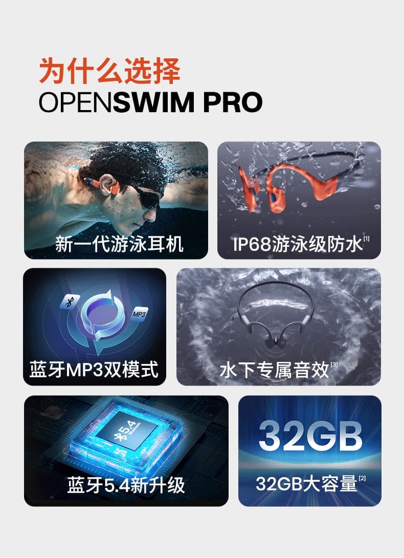 Shokz韶音 运动耳机 OpenSwim Pro S710骨传导游泳耳机无线蓝牙运动跑步骑行 多色可选