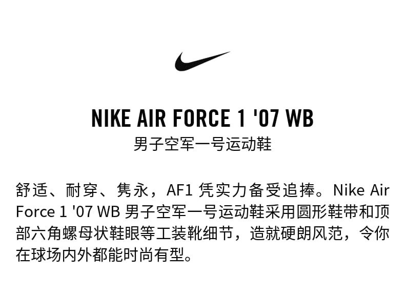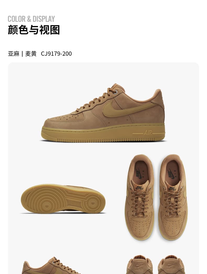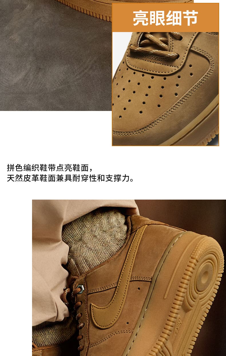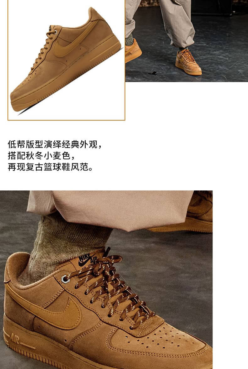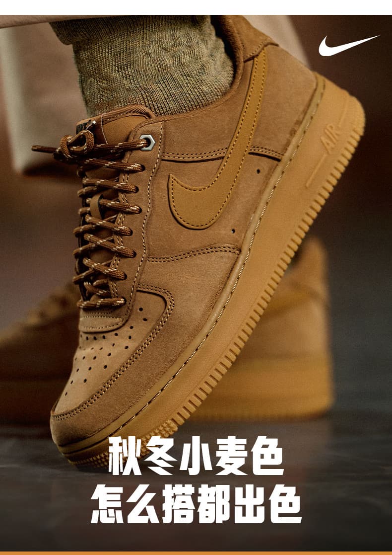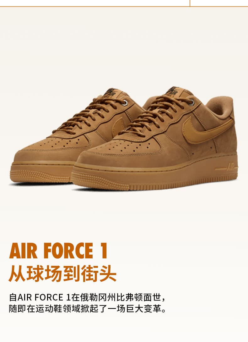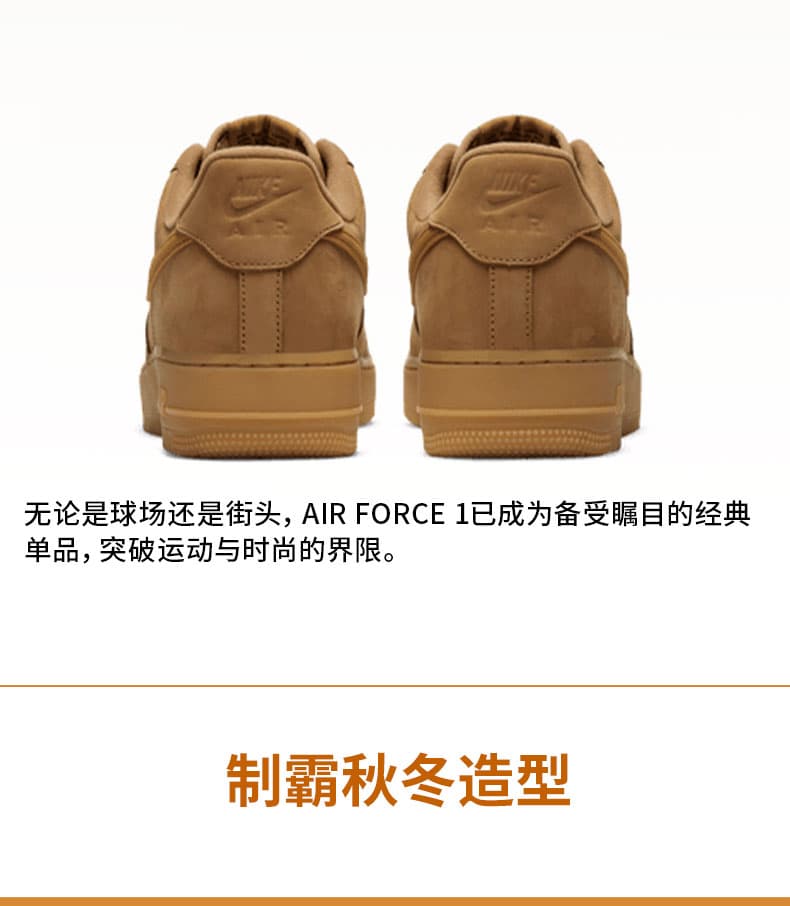 NIKE耐克 男板鞋 AIR FORCE 1'07 WB低帮运动鞋 新款空军一号休闲鞋 CJ9179-200 小麦色