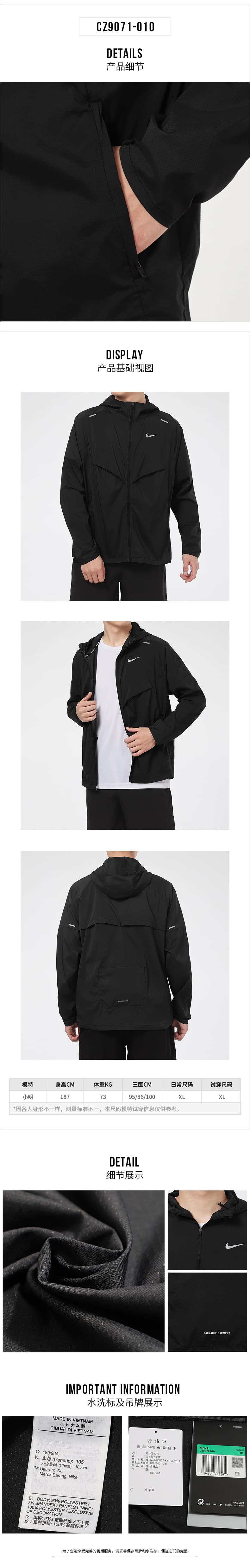 NIKE耐克 男 梭织连帽夹克 宽松连帽夹克 户外跑步运动外套 CZ9071-010 黑/(反光银)