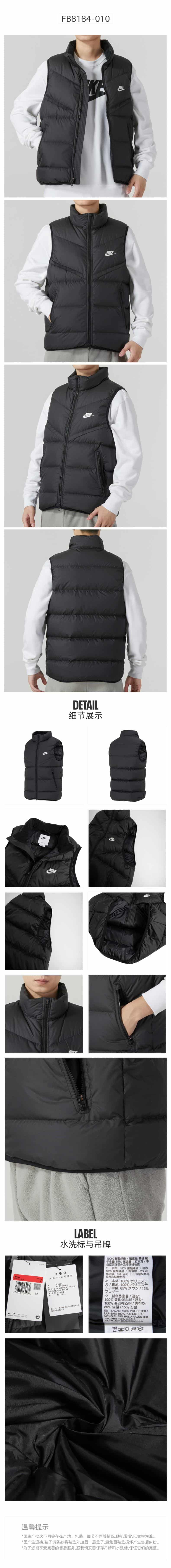 NIKE耐克 羽绒马甲 通勤保暖羽绒马甲 户外简约休闲服舒适棉羽时尚棉衣 FB8184-010 黑/帆白