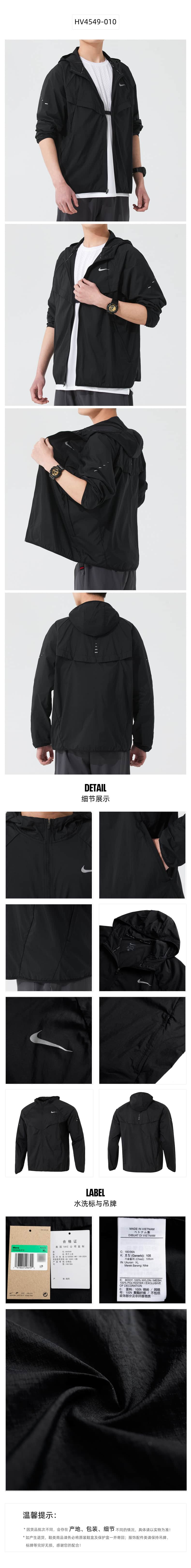 NIKE耐克 男 梭织夹克 户外休闲上衣 时尚简约运动跑步外套 HV4549-010 黑/银