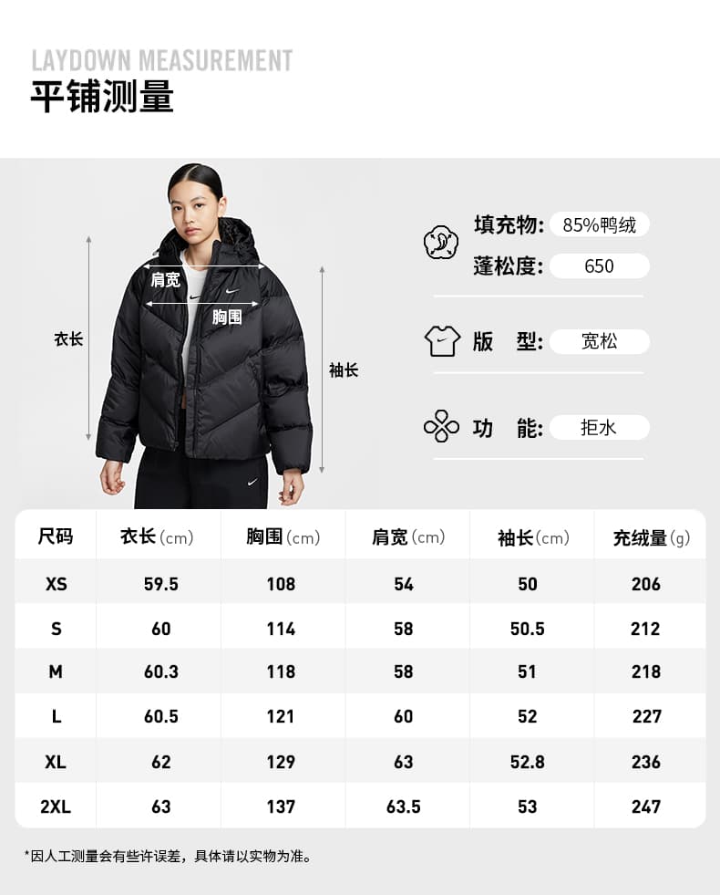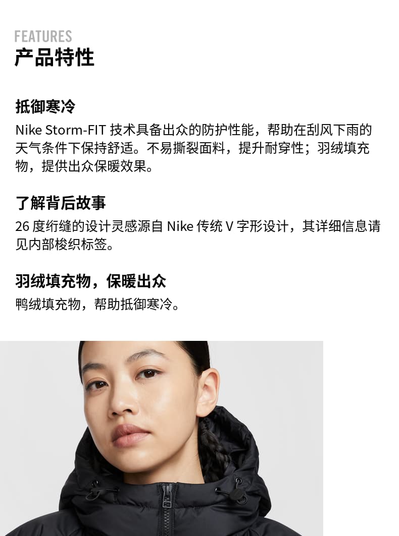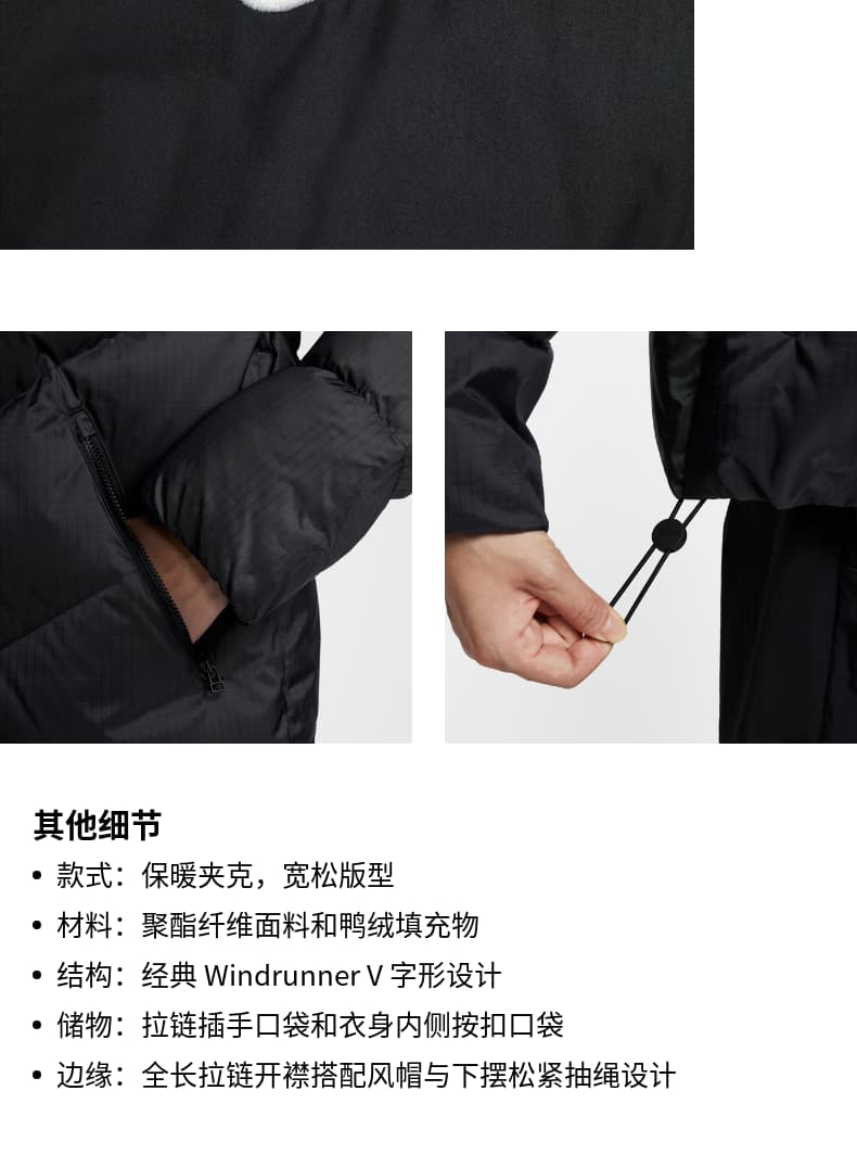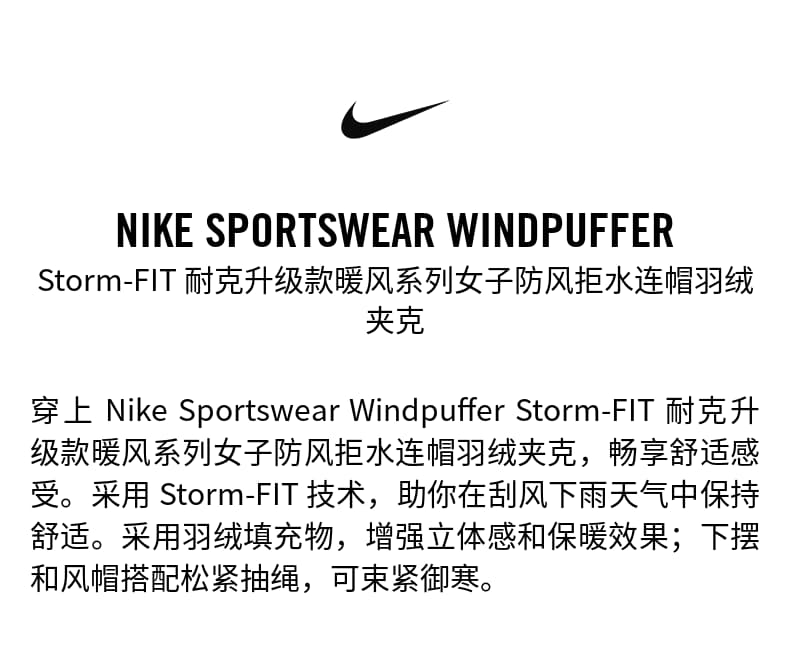 NIKE耐克 女 羽绒服 升级款暖风羽绒服女子连帽夹克 运动休闲羽绒服外套 HV5236-010 黑/帆白