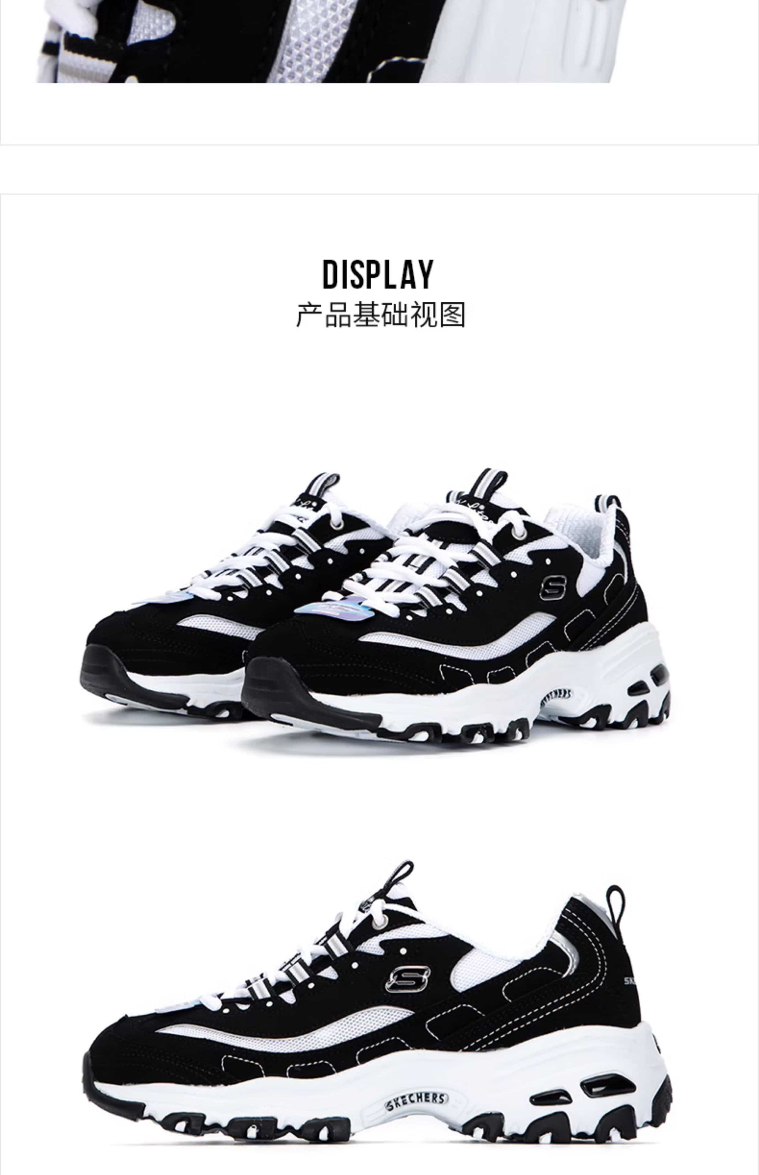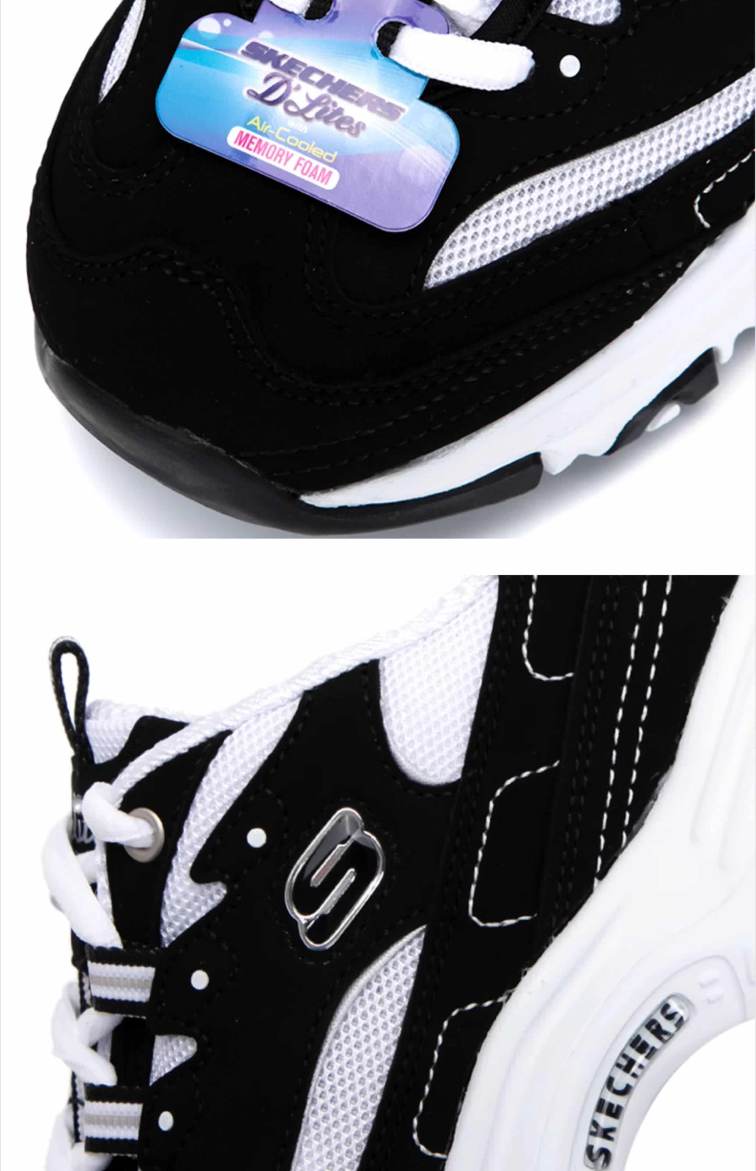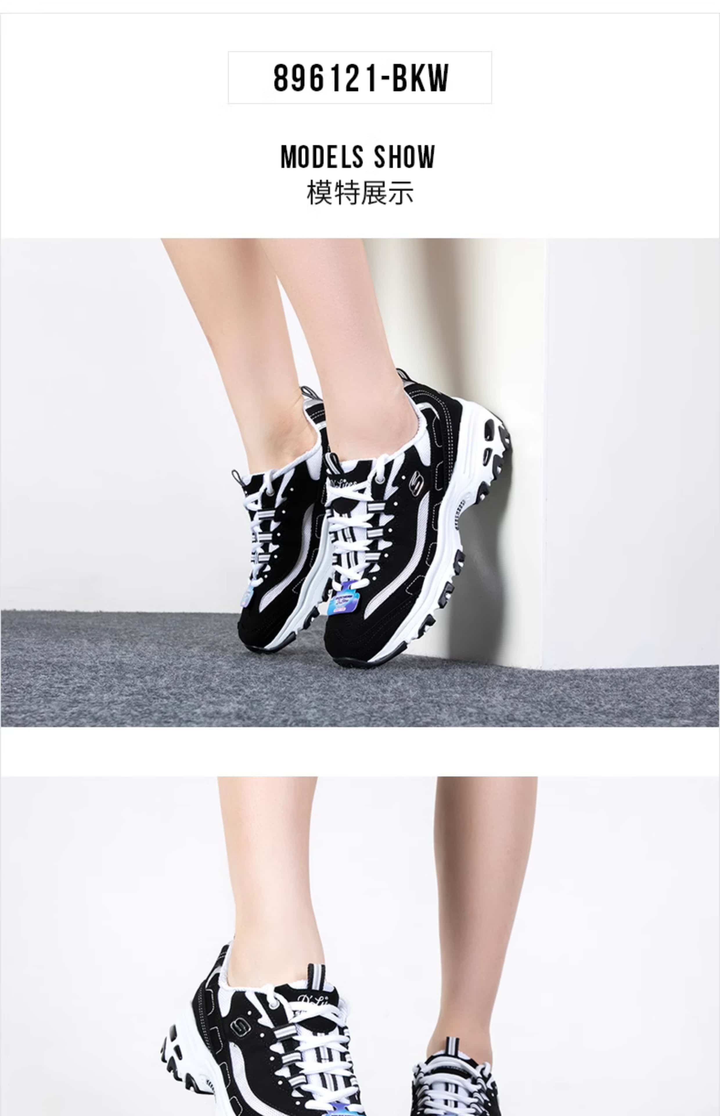 SKECHERS斯凯奇 女 休闲鞋 经典熊猫鞋 网面透气厚底防滑运动鞋 896121-BKW 黑色/白色