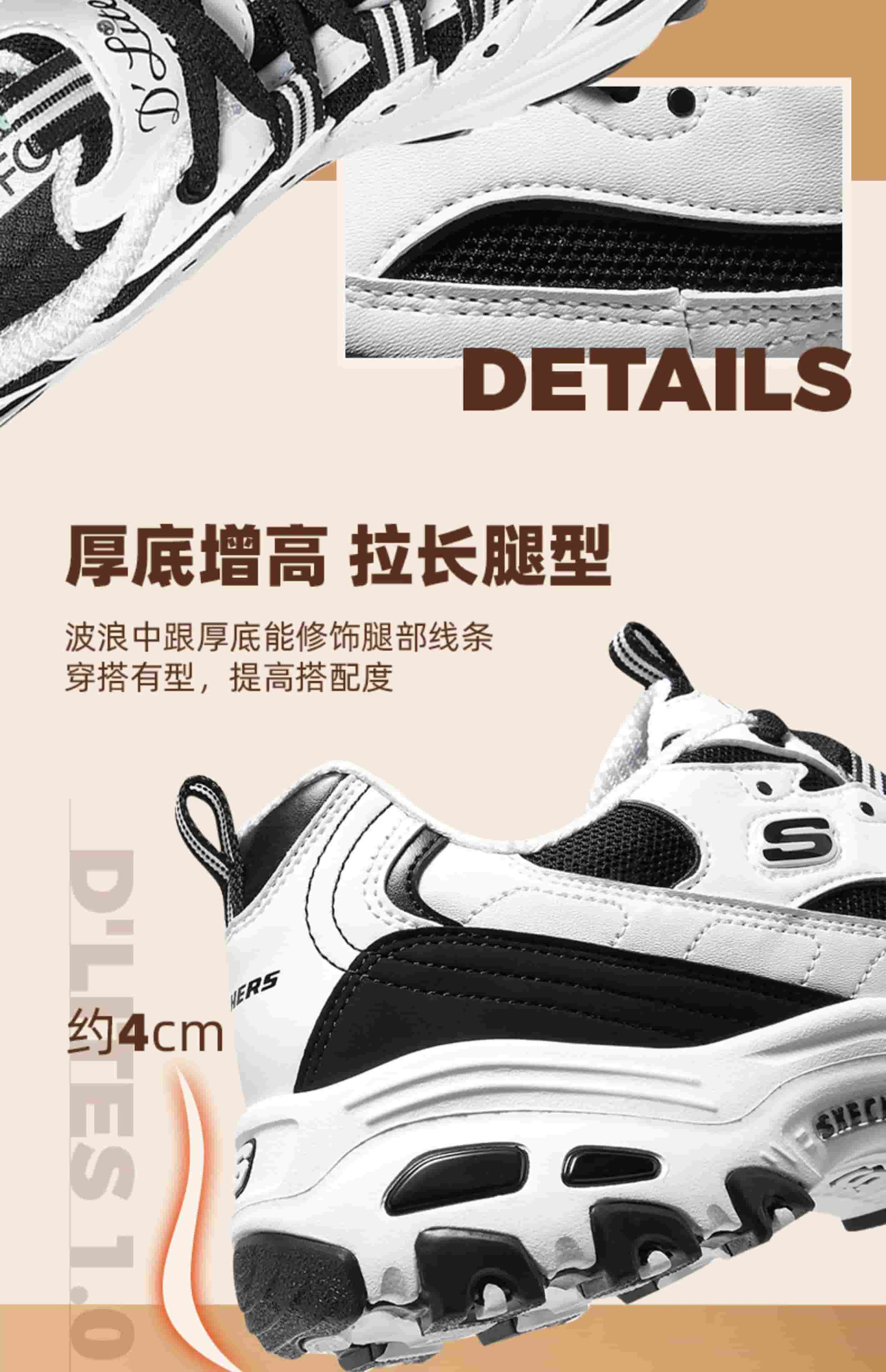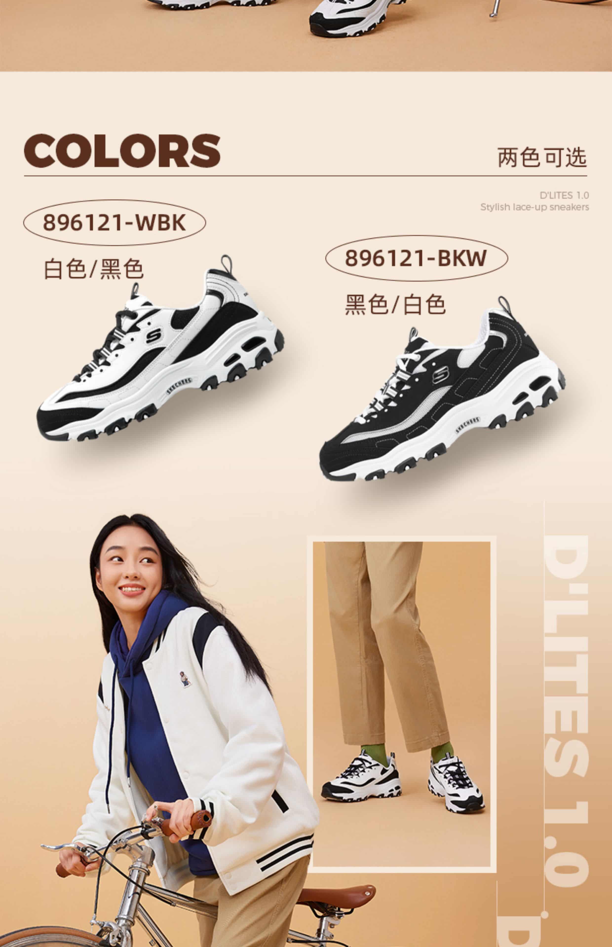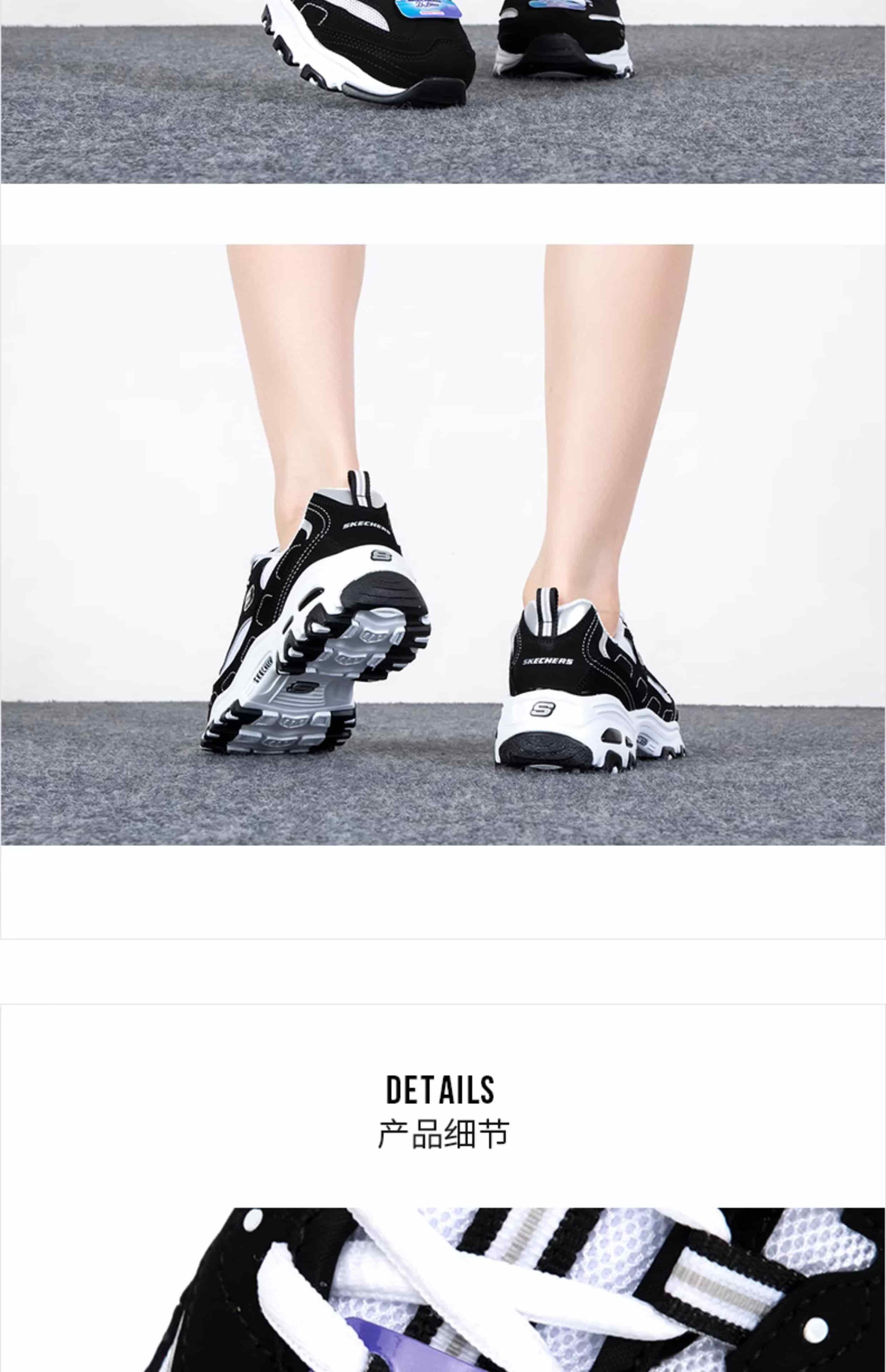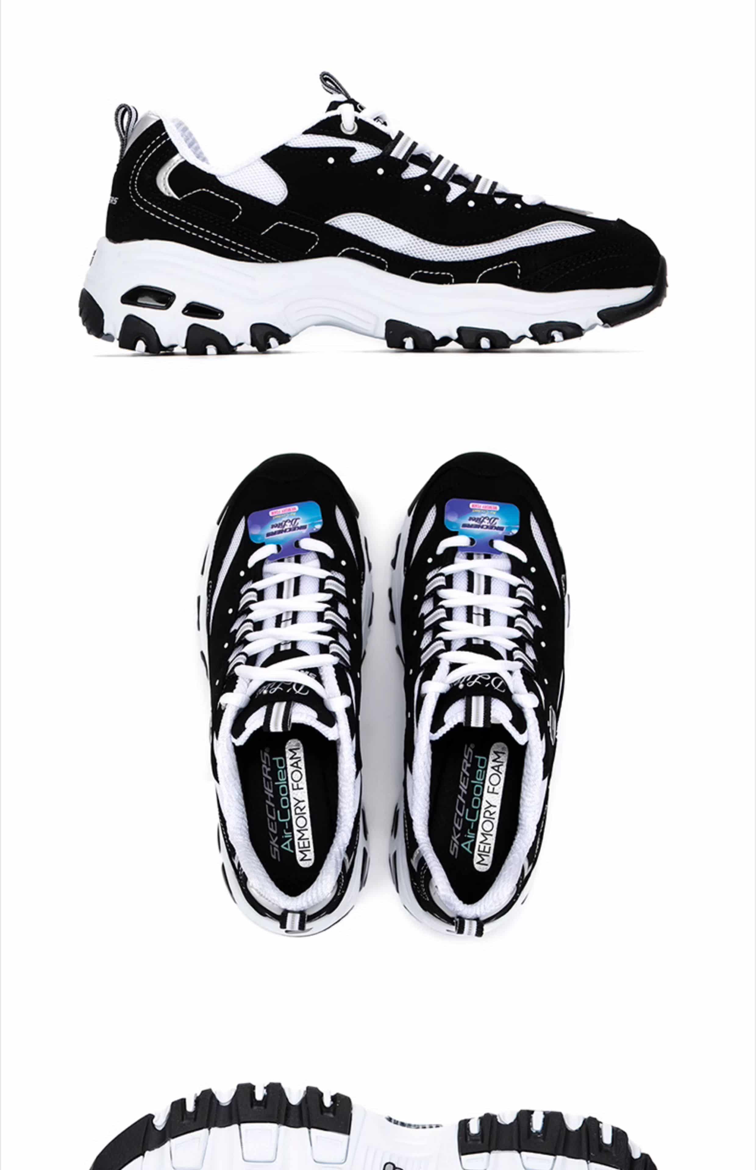 SKECHERS斯凯奇 女 休闲鞋 经典熊猫鞋 网面透气厚底防滑运动鞋 896121-BKW 黑色/白色
