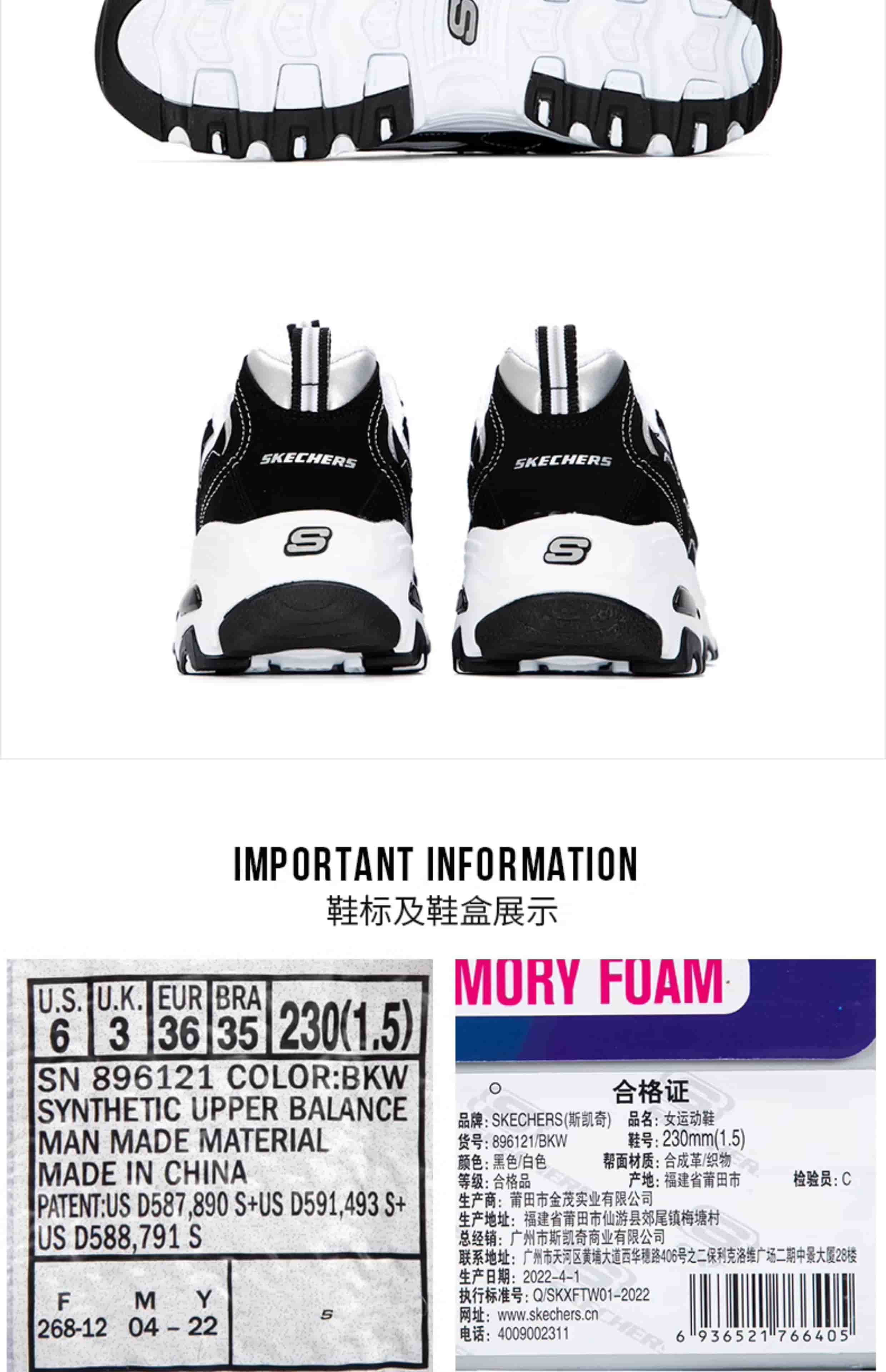 斯凯奇经典熊猫鞋 896121-BKW