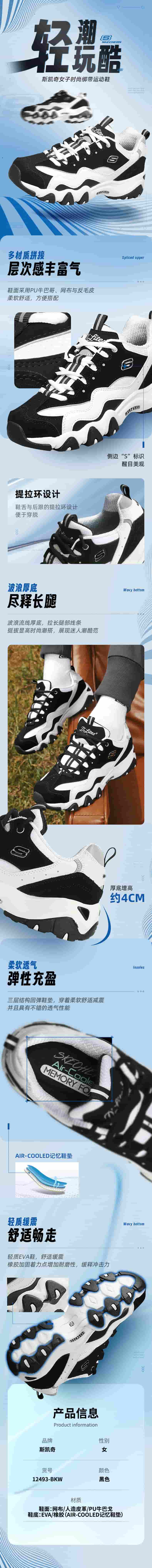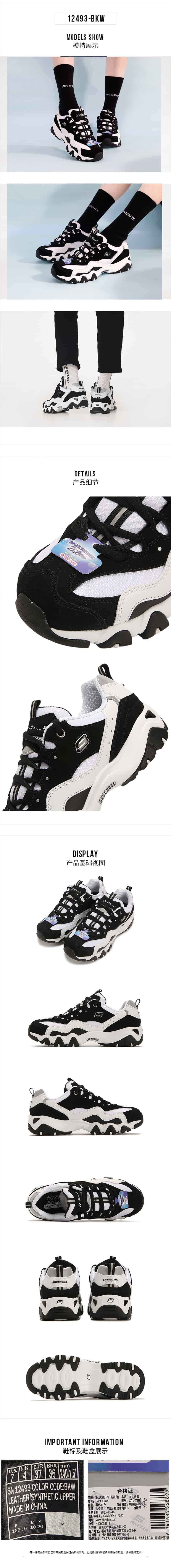 SKECHERS斯凯奇 女 休闲鞋 经典熊猫鞋老爹鞋 网面透气厚底防滑运动鞋 12493-BKW 黑色/白色