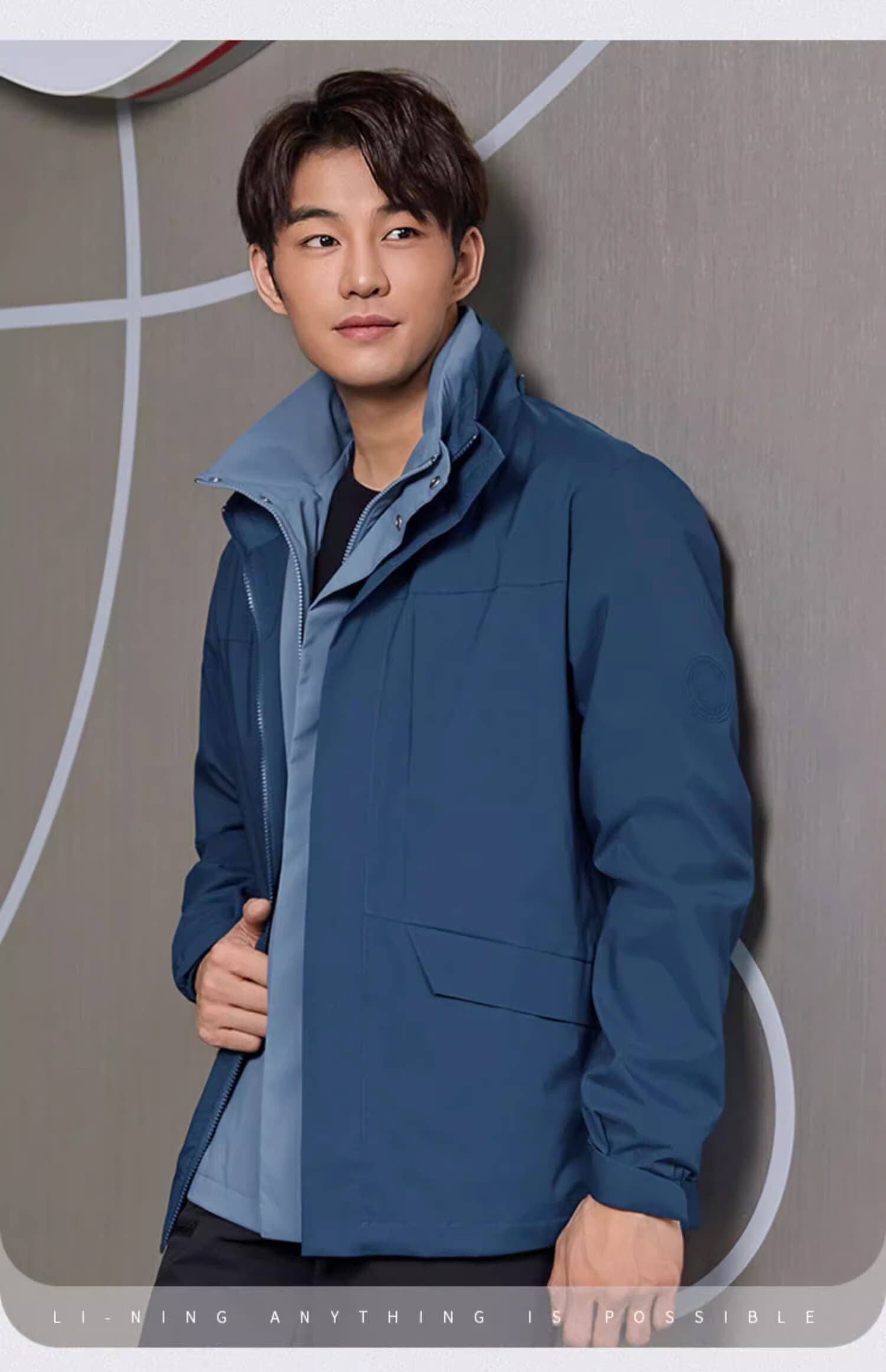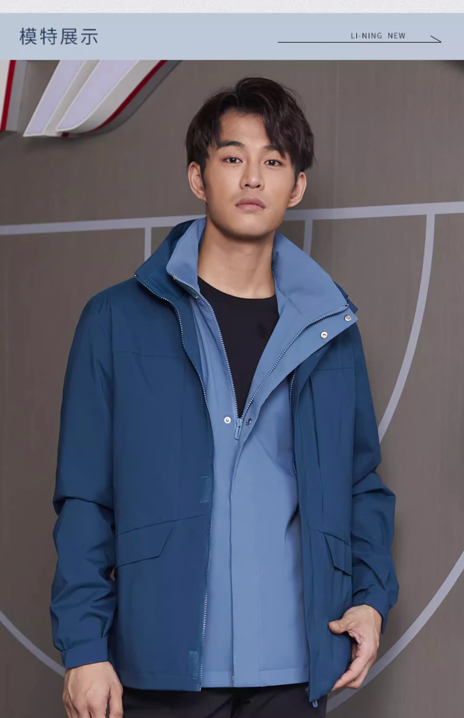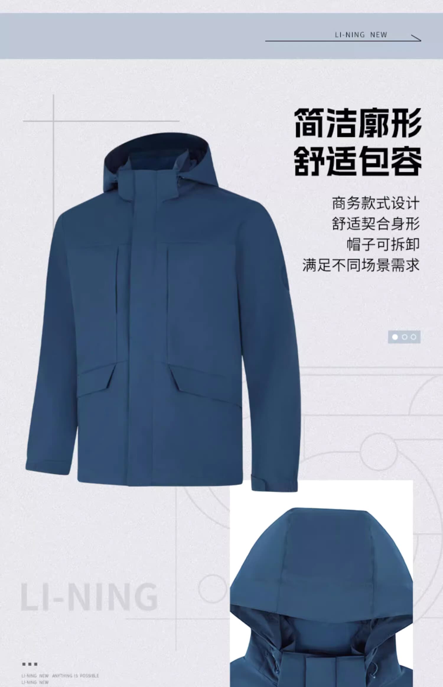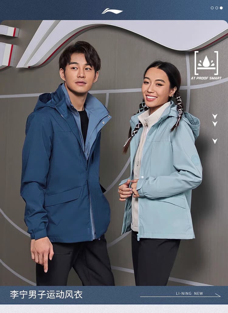 LINING李宁 男 运动风衣 2025团购系列男子防泼水可脱卸连帽外套 AFDUA07-4 绒鼠褐色
