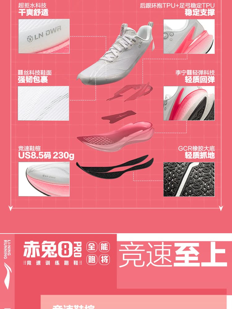 LINING李宁 赤兔8PRO 女 跑步鞋 2025年秋季新款减震回弹专业竞速运动跑鞋 ARPV016-8 光谱黄