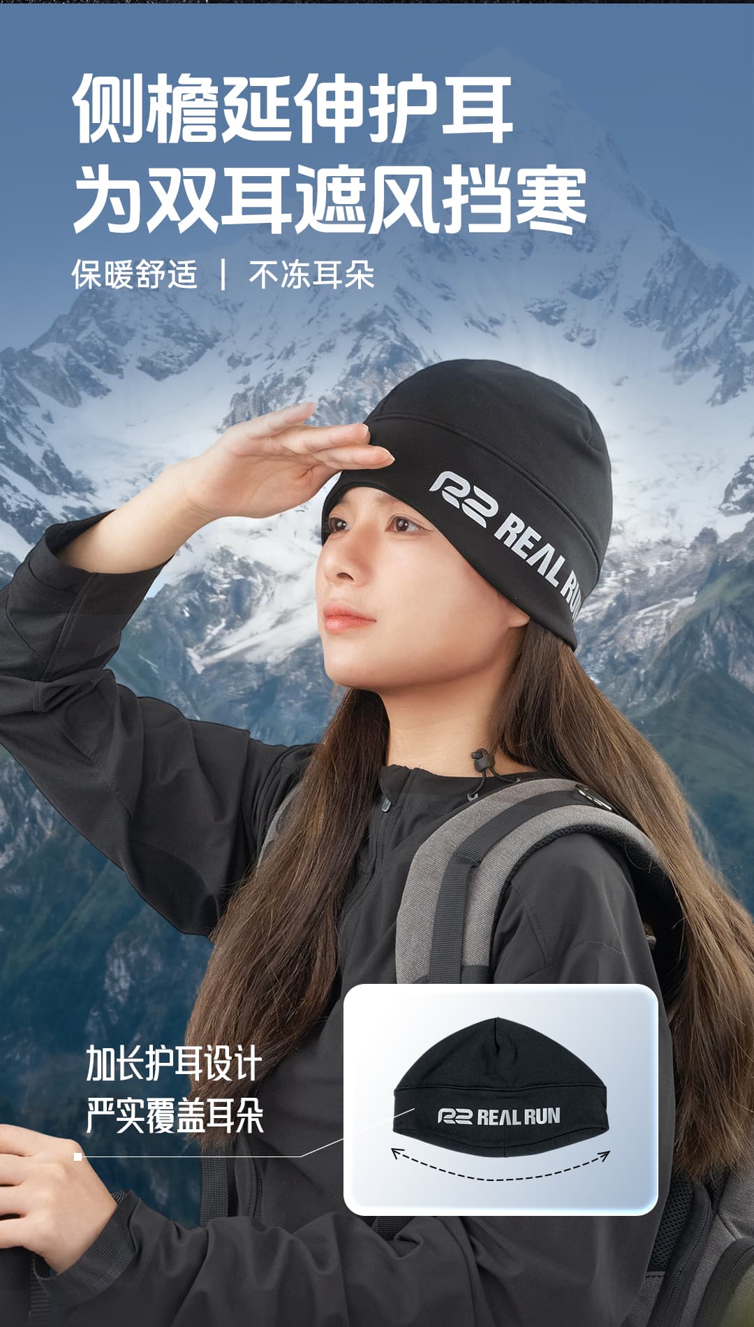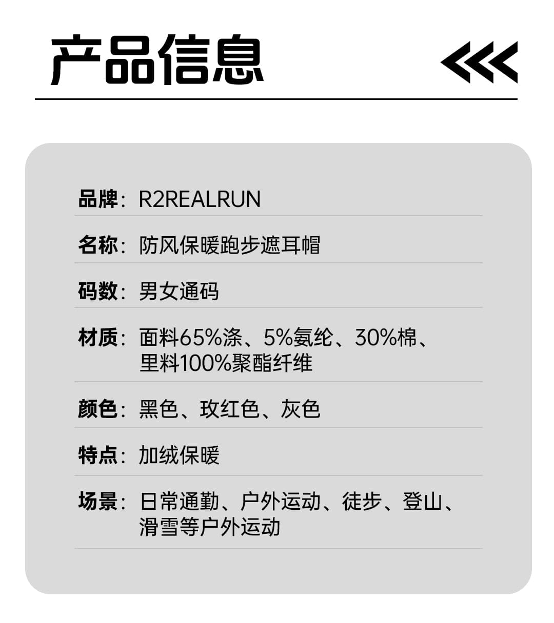 R2 REALRUN 跑步遮耳帽 秋冬加绒防风保暖遮耳帽 防寒护耳户外加厚头套运动男女 三色可选