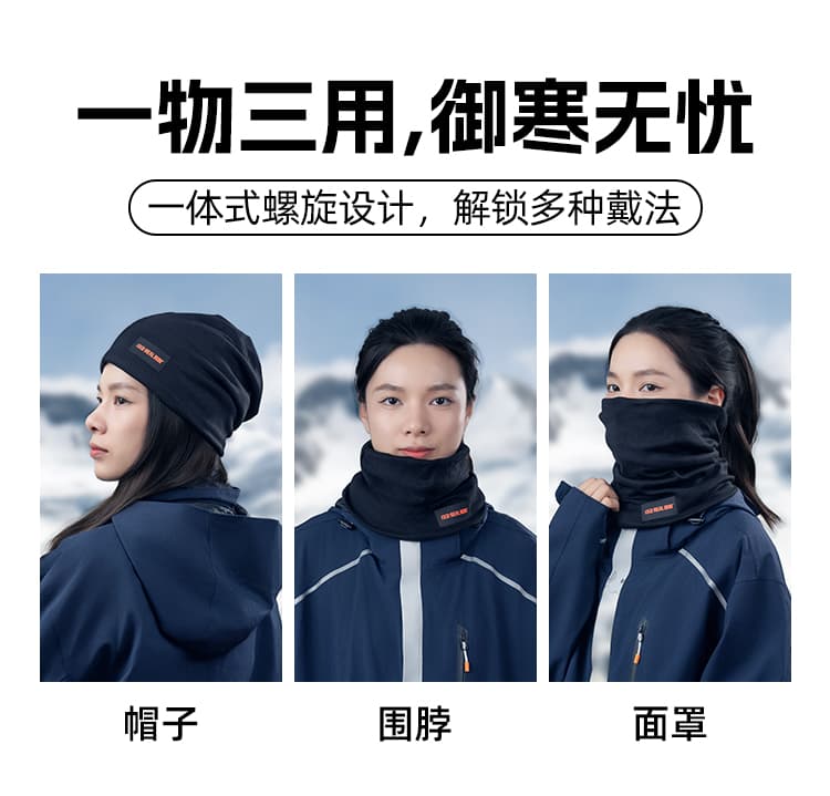 加绒围脖、面罩、帽一体设计