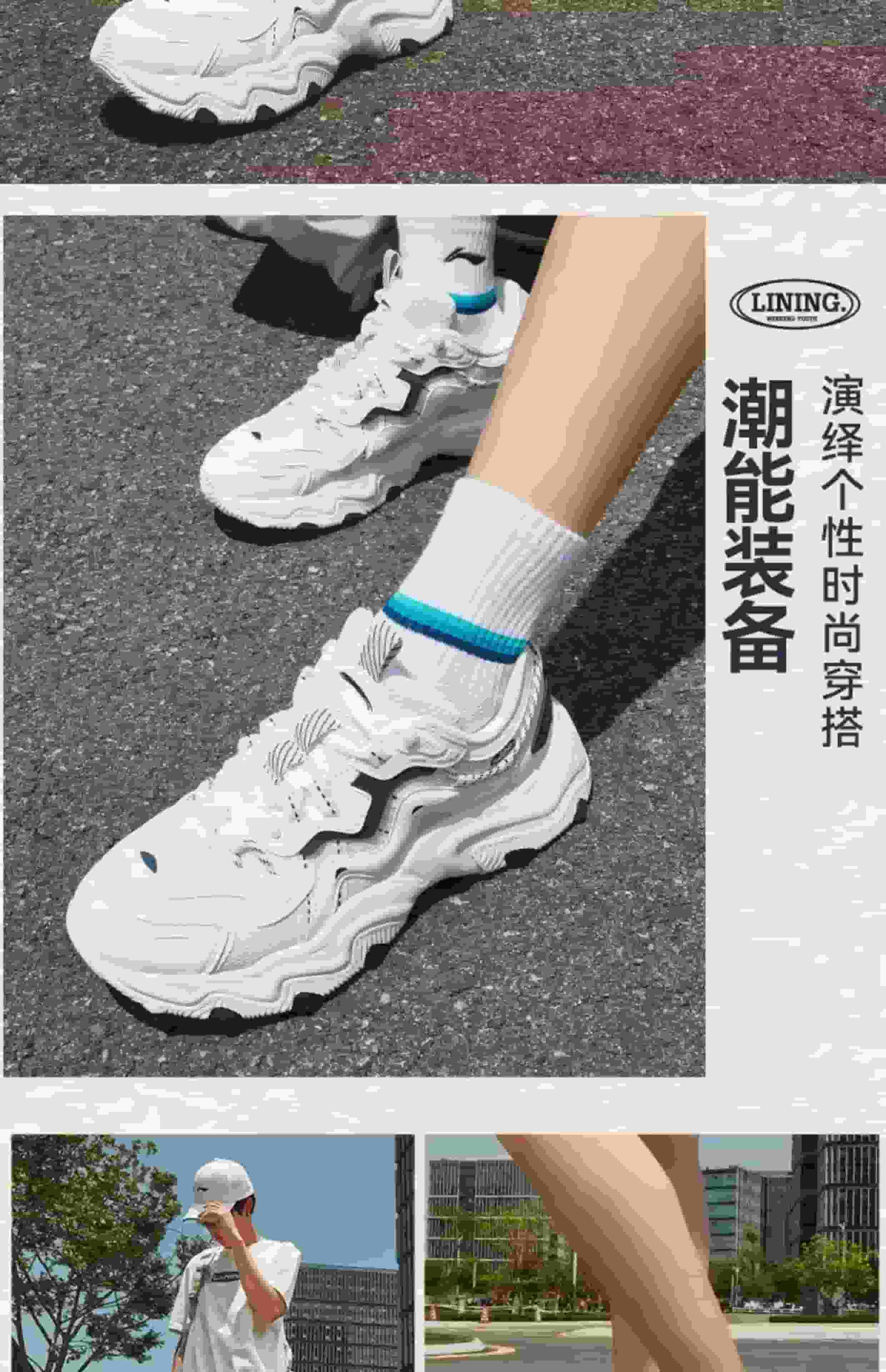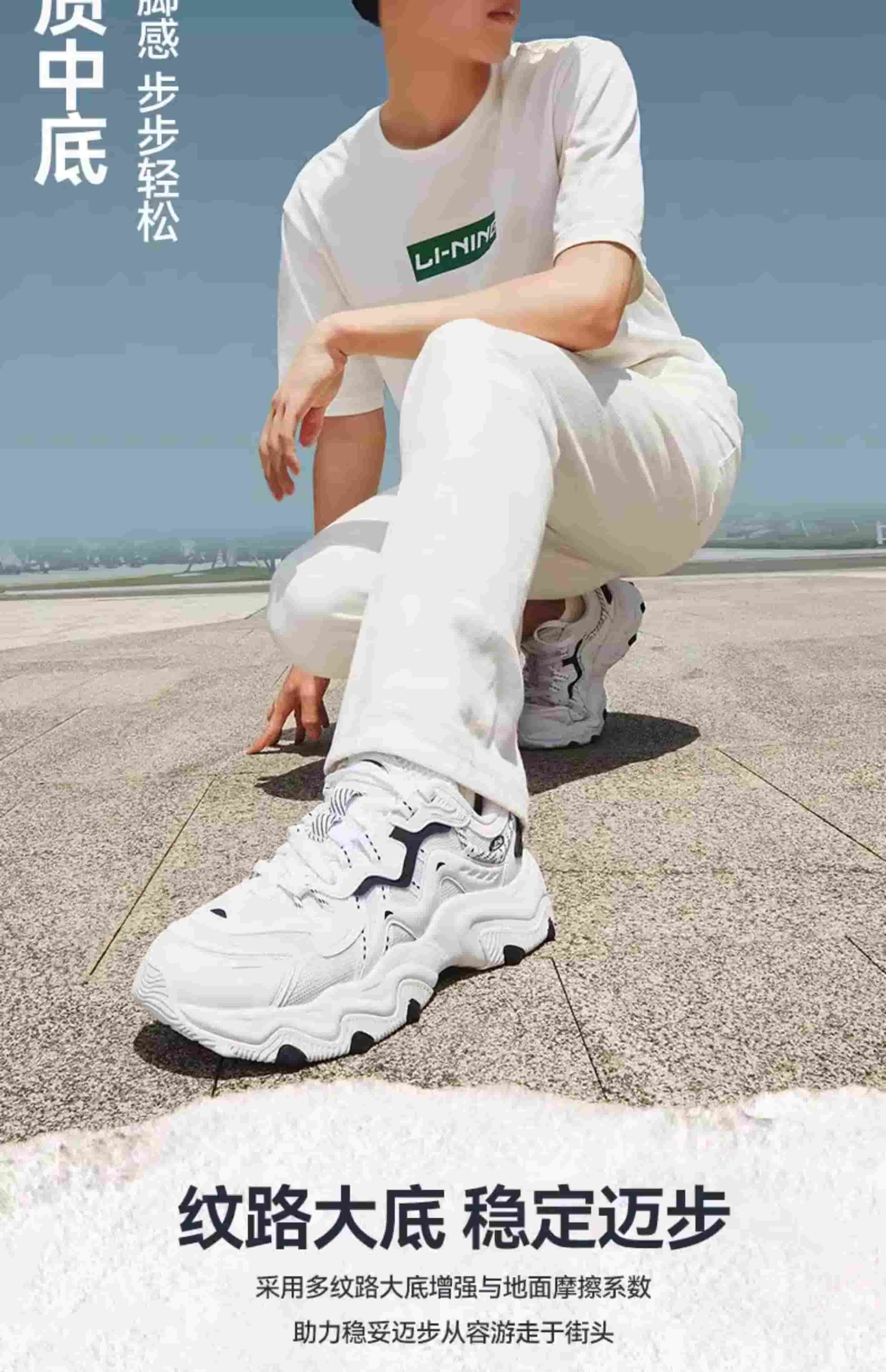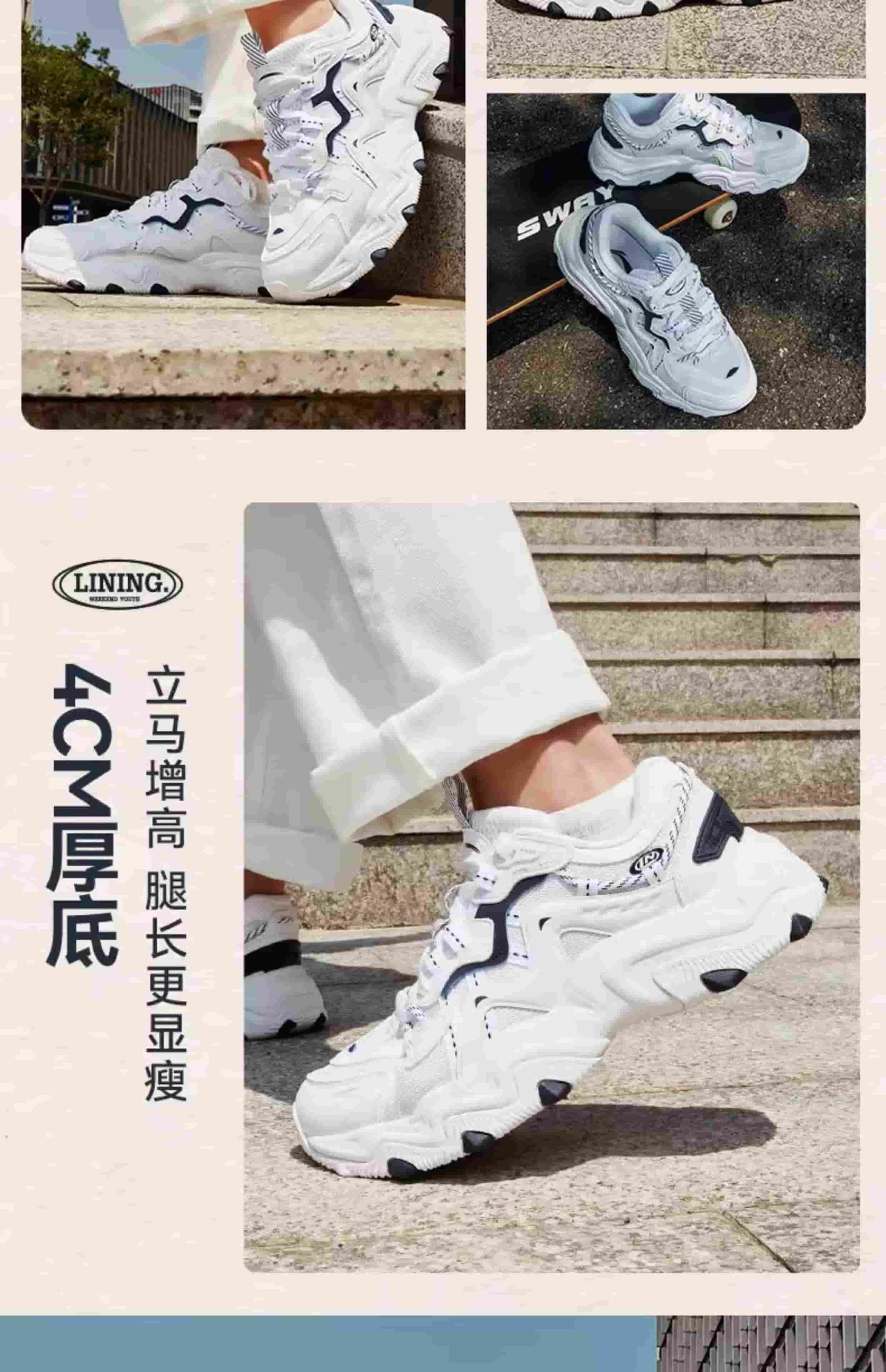 LINING李宁 男 休闲鞋 猫爪运动鞋 2025新款百搭舒适回弹耐磨时尚增高老爹鞋 AGCV399-1 标准白