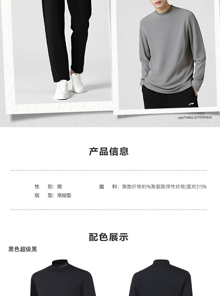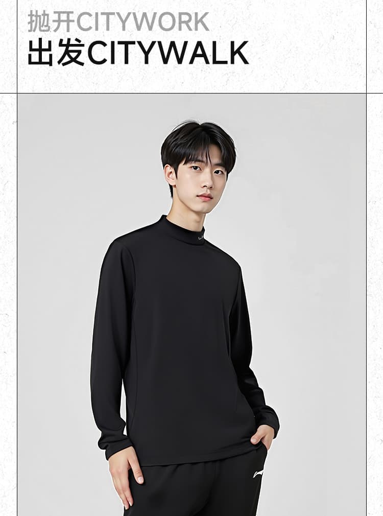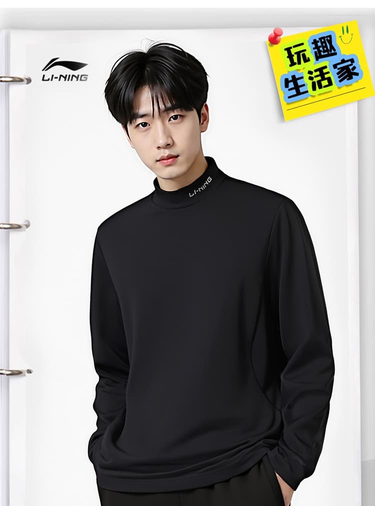 LINING李宁 男 长袖T恤 舒适潮流休闲套头衫 卫衣T恤 ATLV349-1 黑色