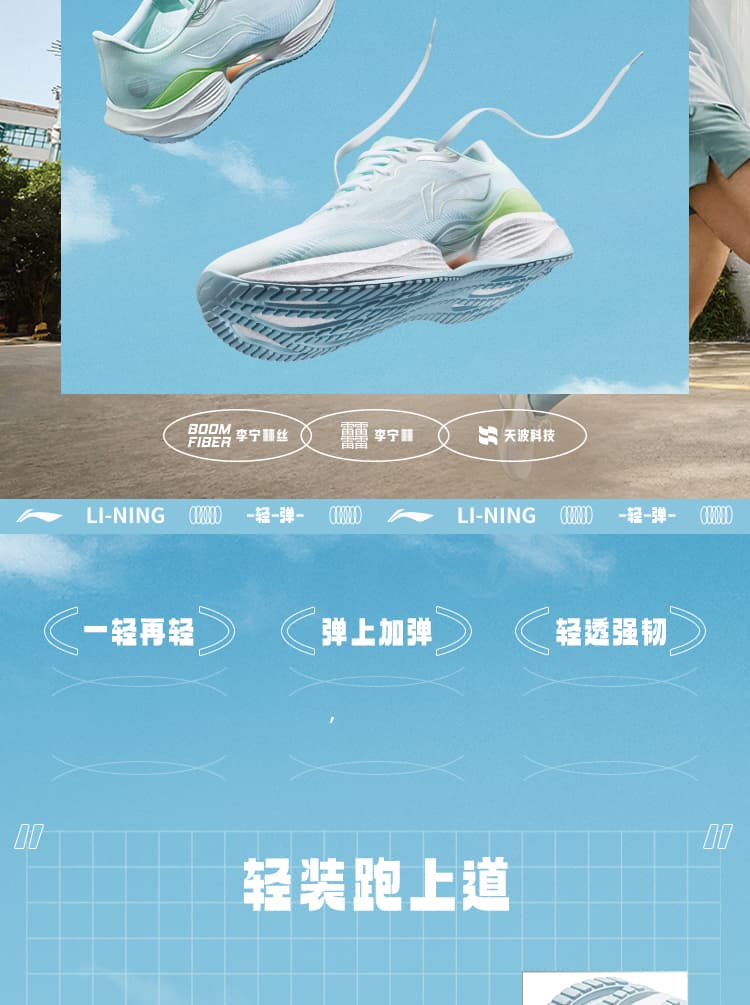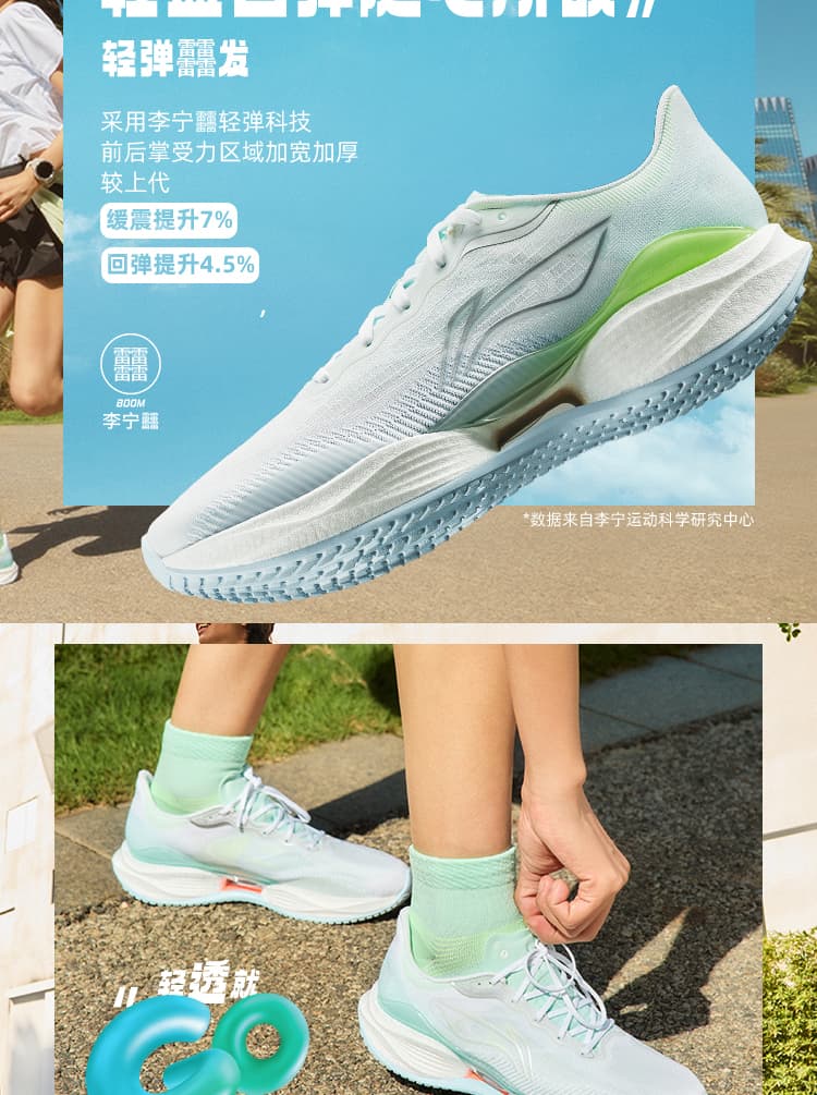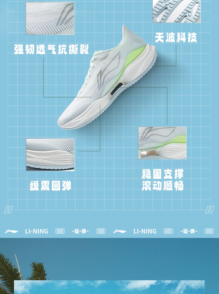 LINING李宁 男 超轻22缓震跑鞋 专业减震回弹中考体育训练轻便透气运动鞋 ARBV001-16 浅石灰