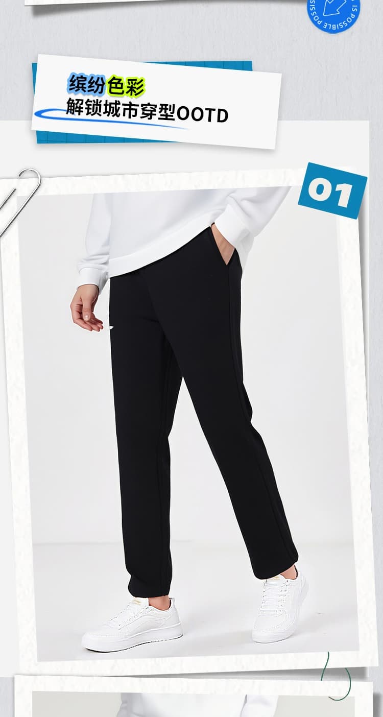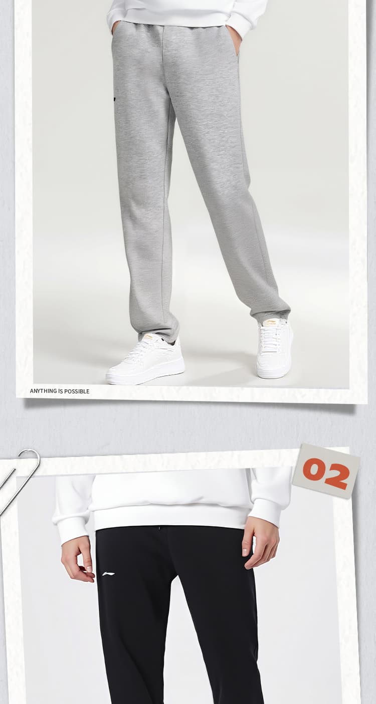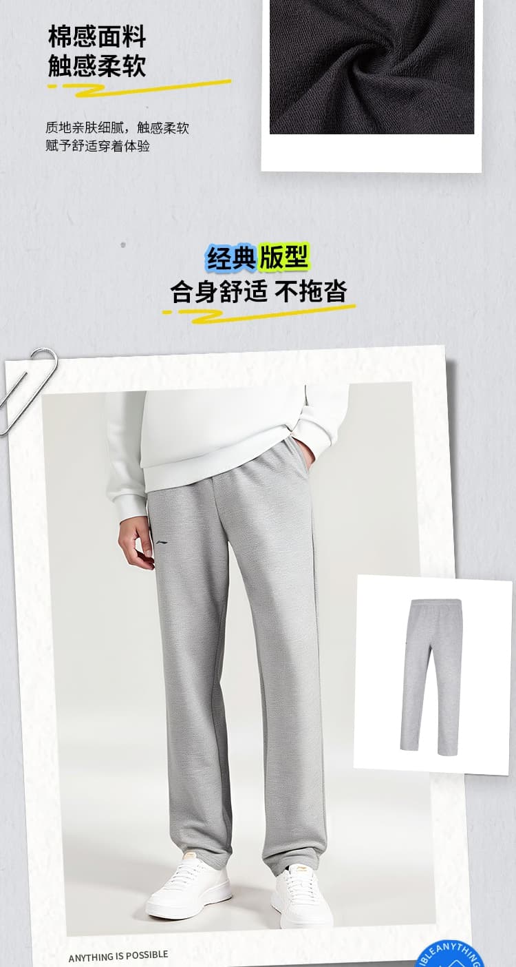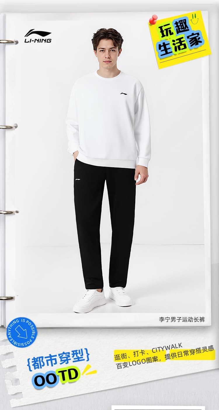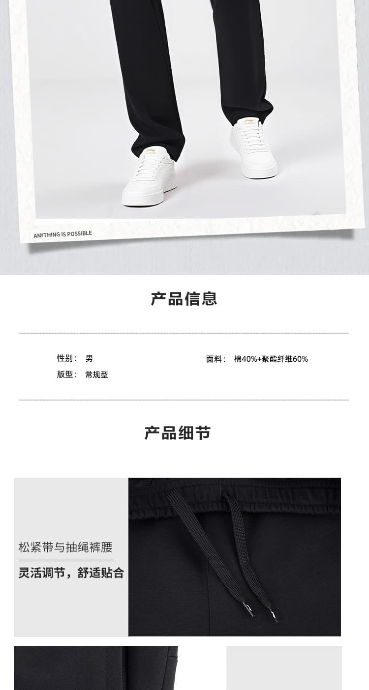 LINING李宁 男 直筒卫裤 2025秋冬新款舒适运动裤 宽松直筒裤休闲长裤 AKLV197-1 黑色