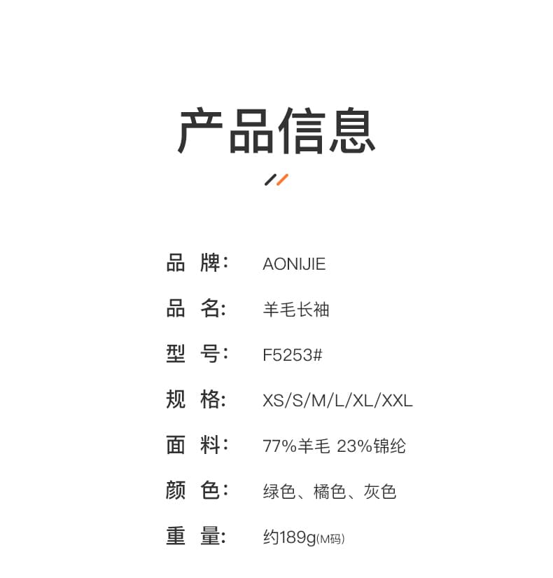 AONIJIE奥尼捷 羊毛长袖 男女款跑步户外滑雪越野跑速干T恤 美利奴羊毛长袖 F5253 橘色