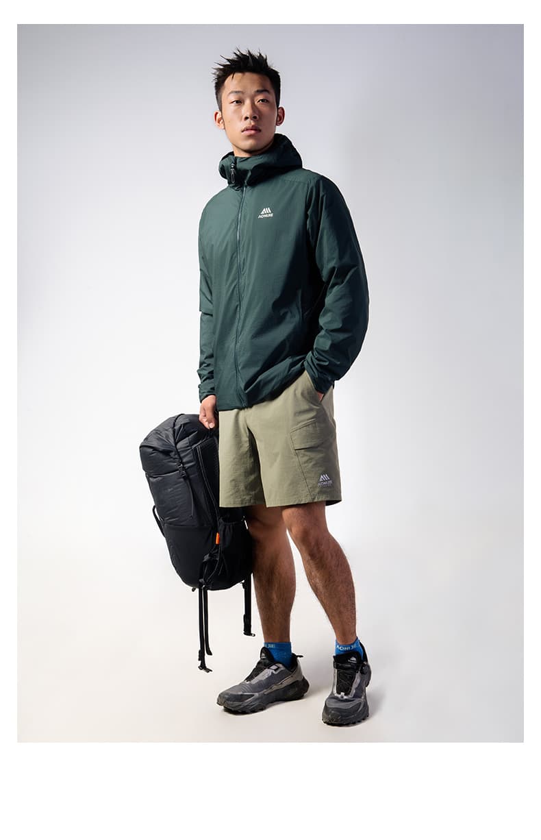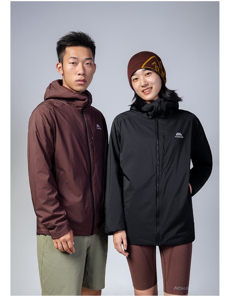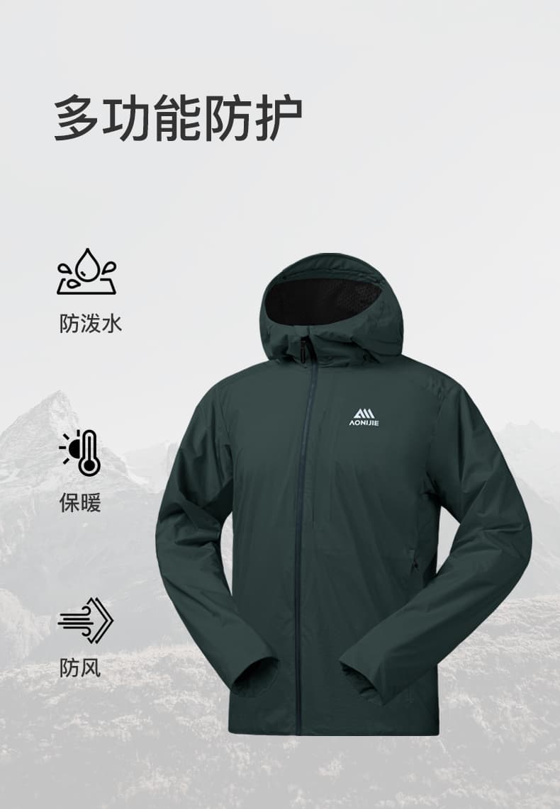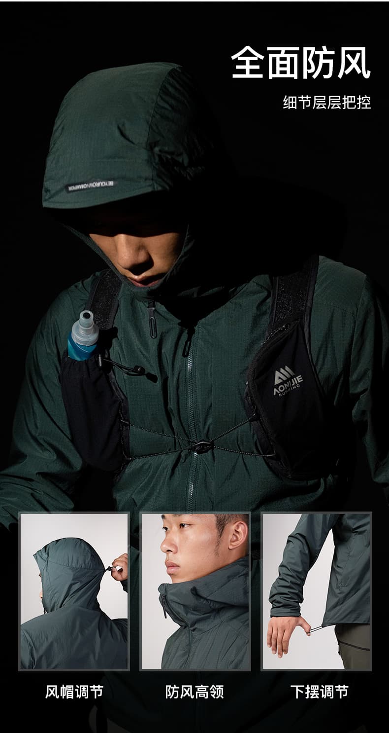 AONIJIE奥尼捷 夹克外套 男女款秋冬户外跑步防风保暖加绒外套 轻量耐磨运动夹克 F5245 墨绿色