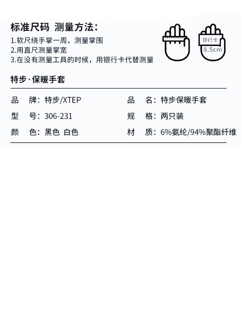 特步 ABA305 白色保暖手套堪称冬季户外全能装备!