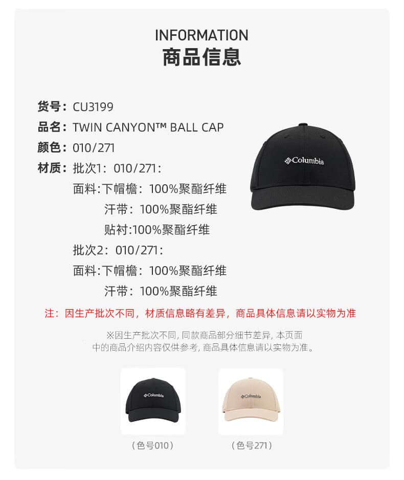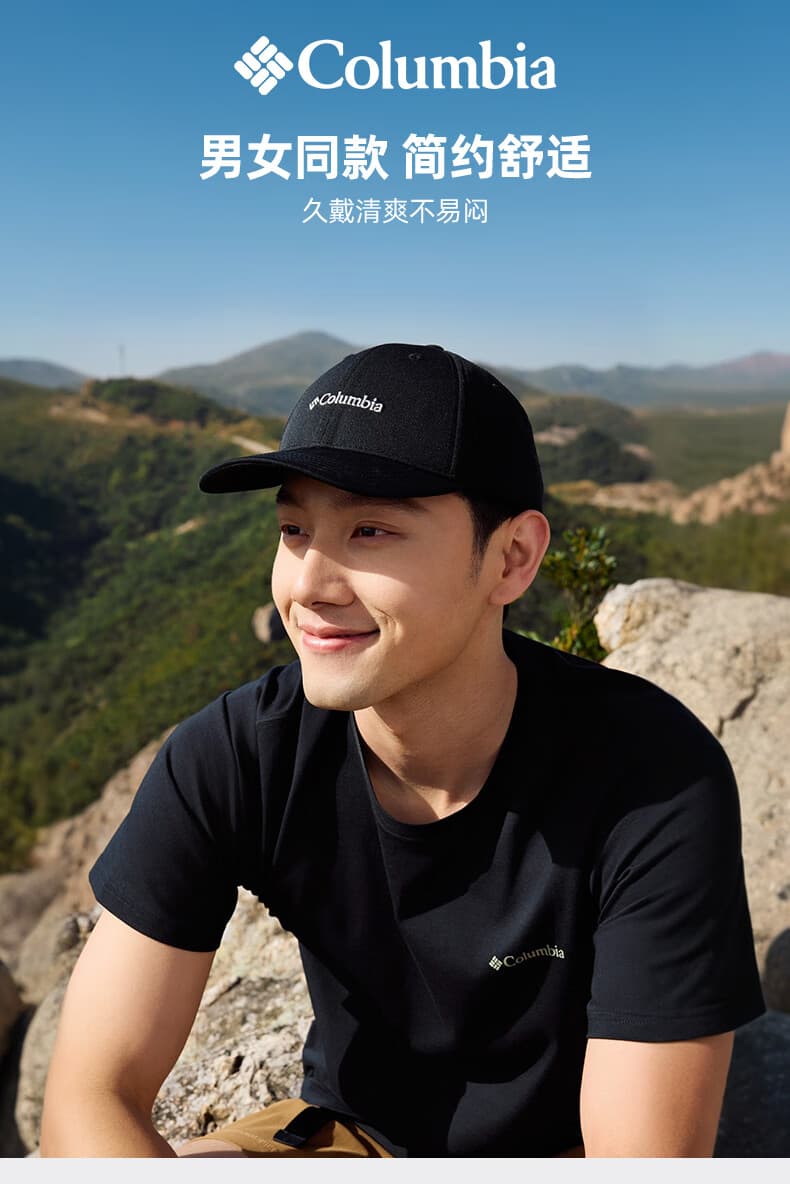 Columbia哥伦比亚 鸭舌帽 户外情侣软顶运动帽 野营舒适简约旅行棒球帽 CU3199010 黑色