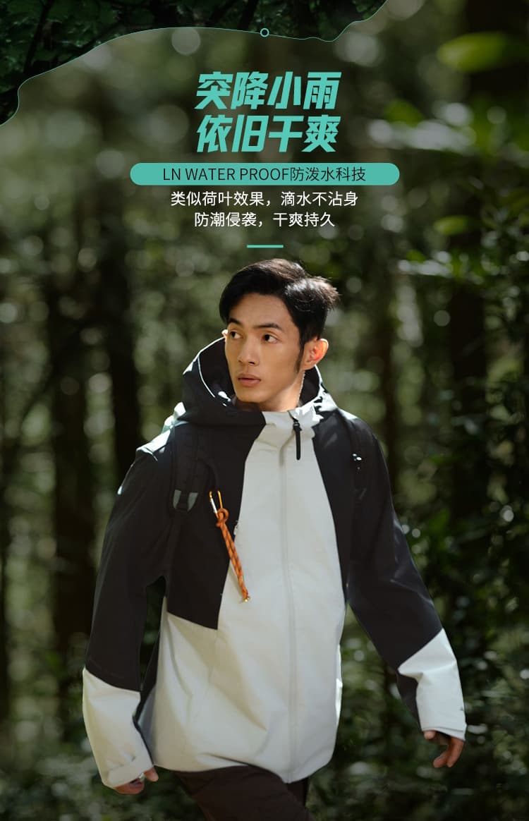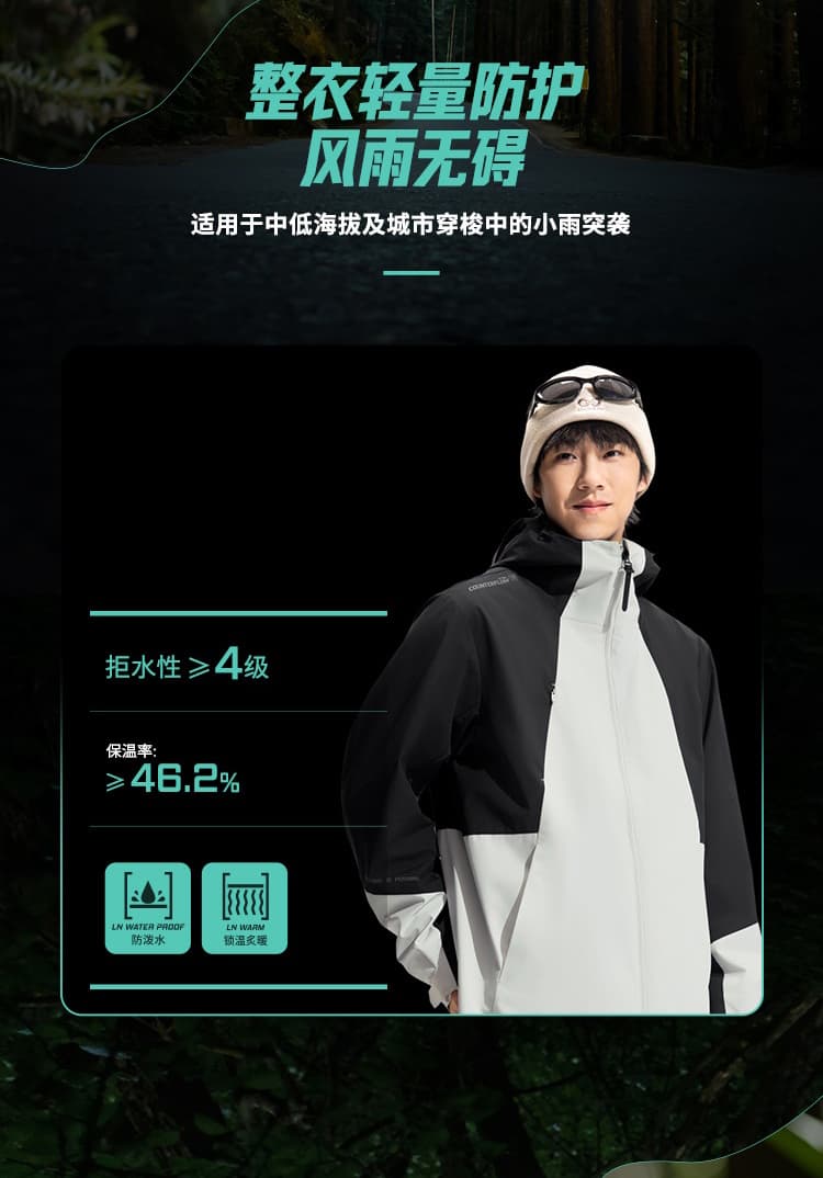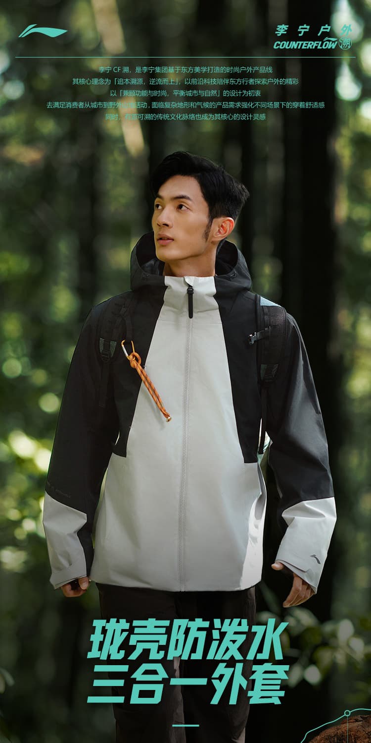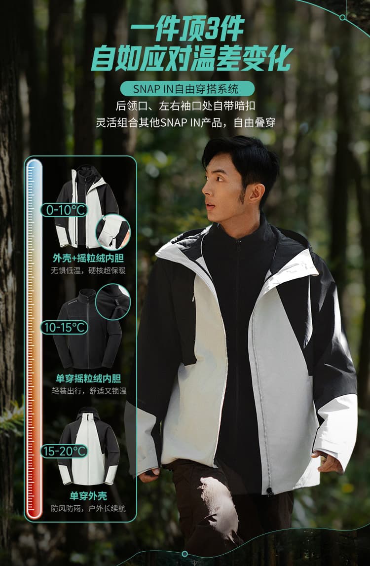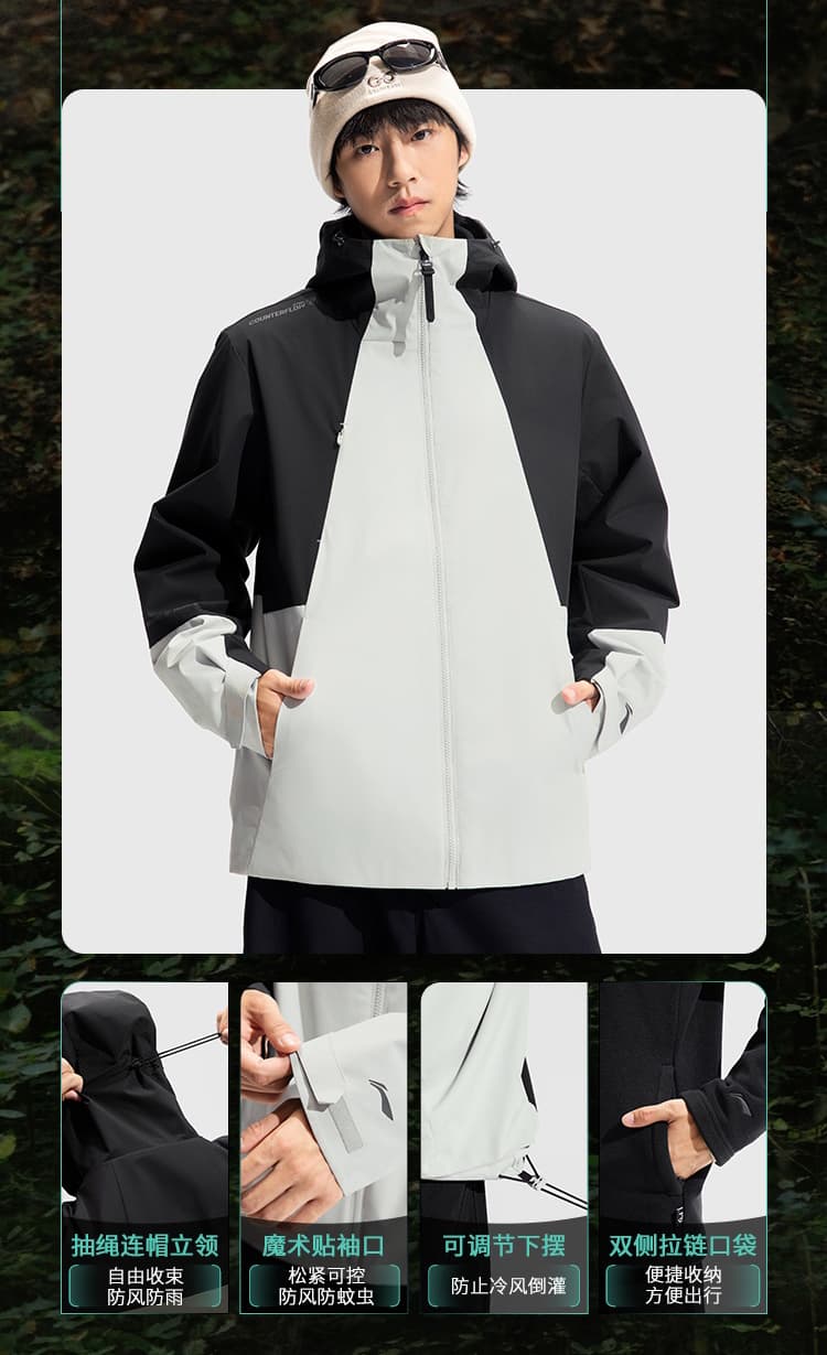 LINING李宁 男 三合一运动风衣 CF溯珑壳连帽防风防泼水户外运动保暖夹克外套 AWBV089-4 黑色
